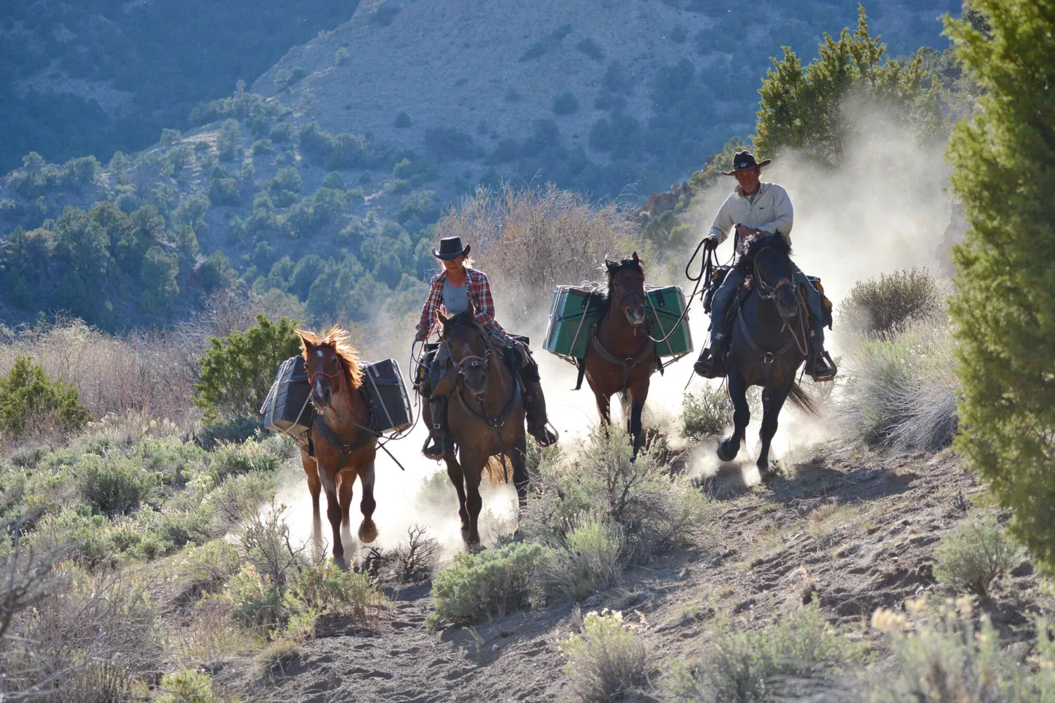 Ihr Weg hat sie mit ihren Mustangs und Charlie, der Hündin, von Patagonien bis Alaska geführt, durch Waldbrandgebiete und Minustemperaturen, über berühmte Trails und verlassene Wüsten, und zum Schluss konnten sie sich den Wunsch, mit ihren Tieren per Schiff nach Europa zurückzukehren, erfüllen. Die Pferde sind für die beiden Transportmittel und beste Freunde zugleich, gemeinsam erleben sie die Einfachheit und Weite des Lebens inmitten der Natur und lassen das Publikum teilhaben an dem Glück, das die Reise durch abgelegene Regionen mit wenig mehr als tierischer Begleitung und einem Zelt, bedeutet.