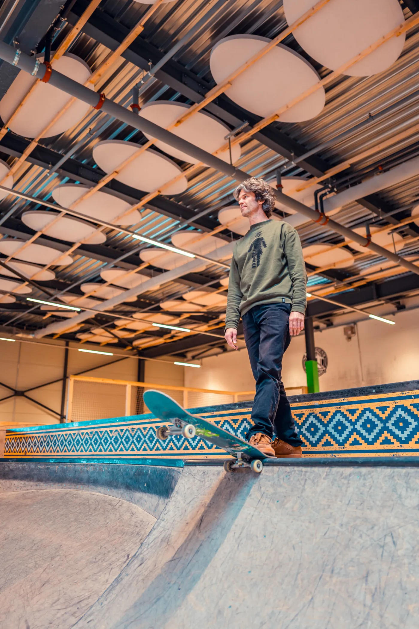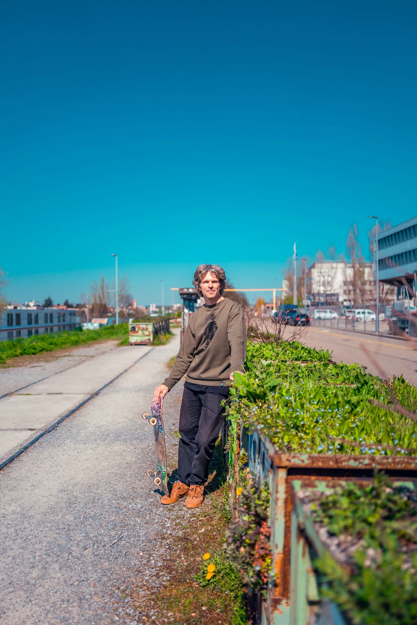 Oli Bürgin ist Skateboarder mit Leib und Seele, arbeitet als Skatepark-Planer & -Erbauer und organisiert regelmässig Skateboard-Events. Seit 2012 ist er am Klybeckquai aktiv, zuerst mit dem Port Land Skatepark auf dem Ex-Esso-Areal und seit 2016 mit der Trendsporthalle.