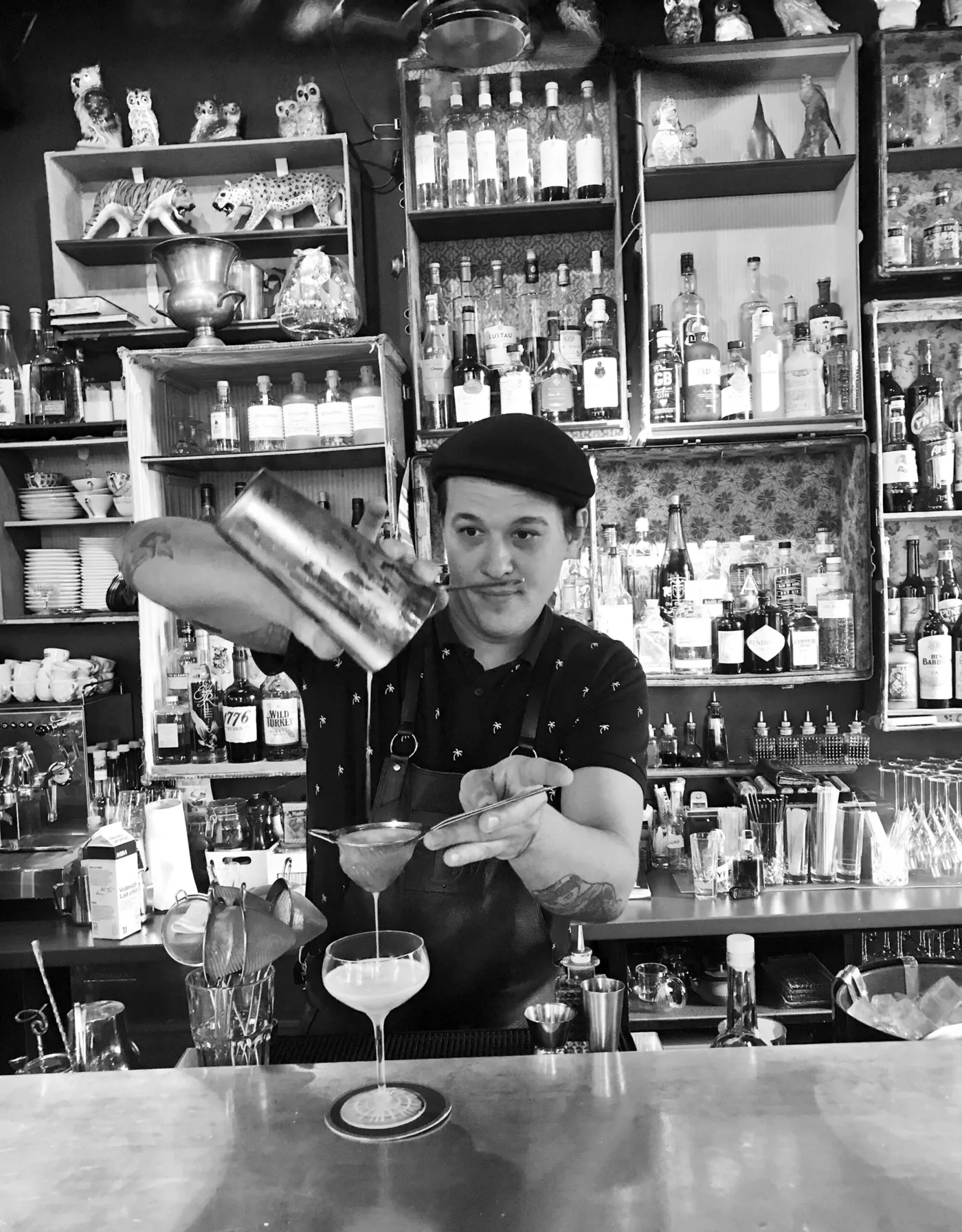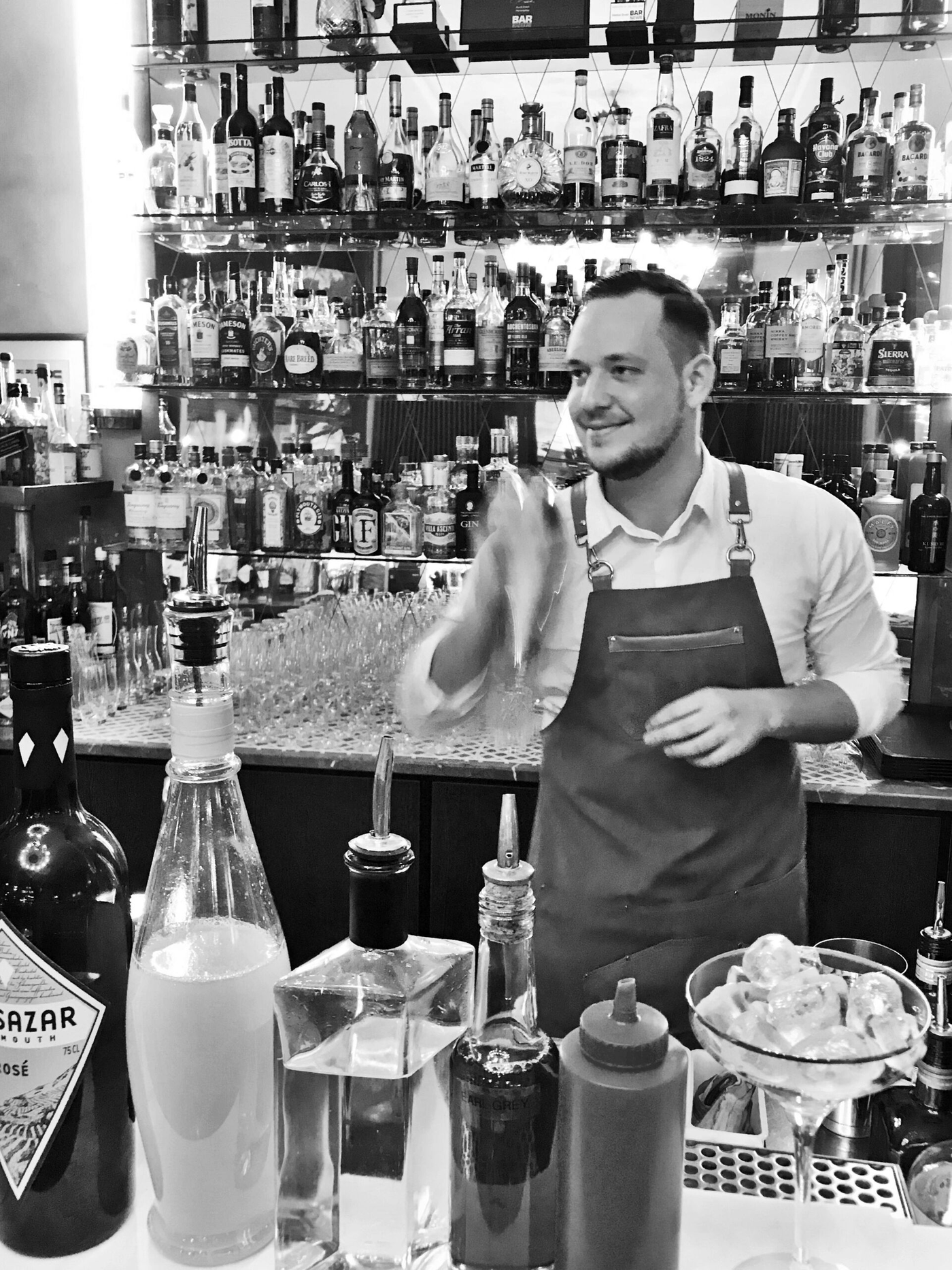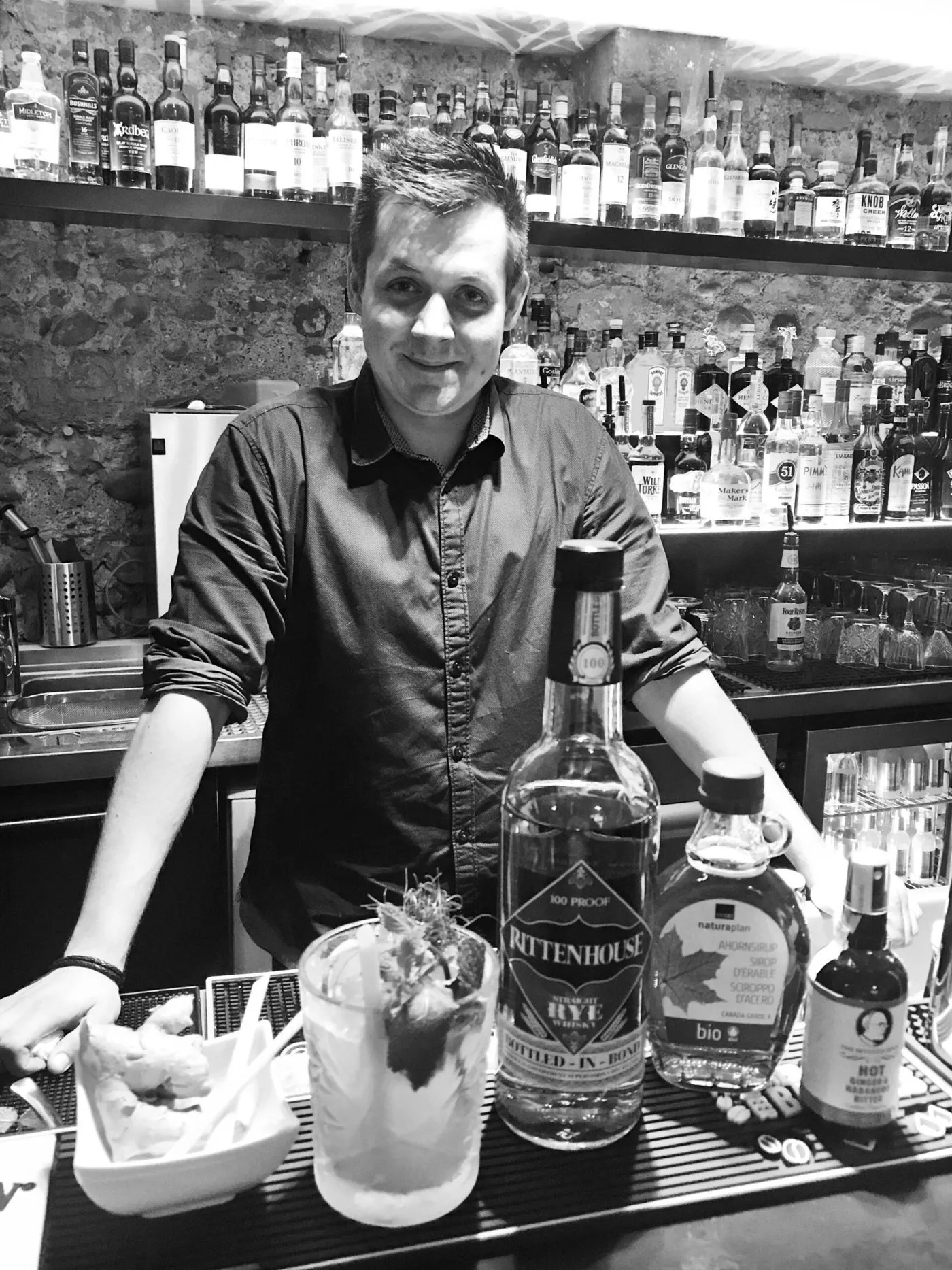 Weiter geht’s mit Julian Bhorania, der aus Zitronengras, Grüntee und schwarzer Schokolade in der Styx Bar an der Unteren Rheingasse den «Le Frère Interdit» mixt. Whisky, Cognac und ein wenig vom Inhalt einer Flasche, die mit «Liqueur Interdite» beschriftet ist, machen den Drink verboten gut. Wie schade, dass es die Styx-Bar heute bereits nicht mehr gibt – sie war nur eine Zwischennutzung. Bleibt die Hoffnung, dass die Styx-Crew bald ein neues Abenteuer wagt.