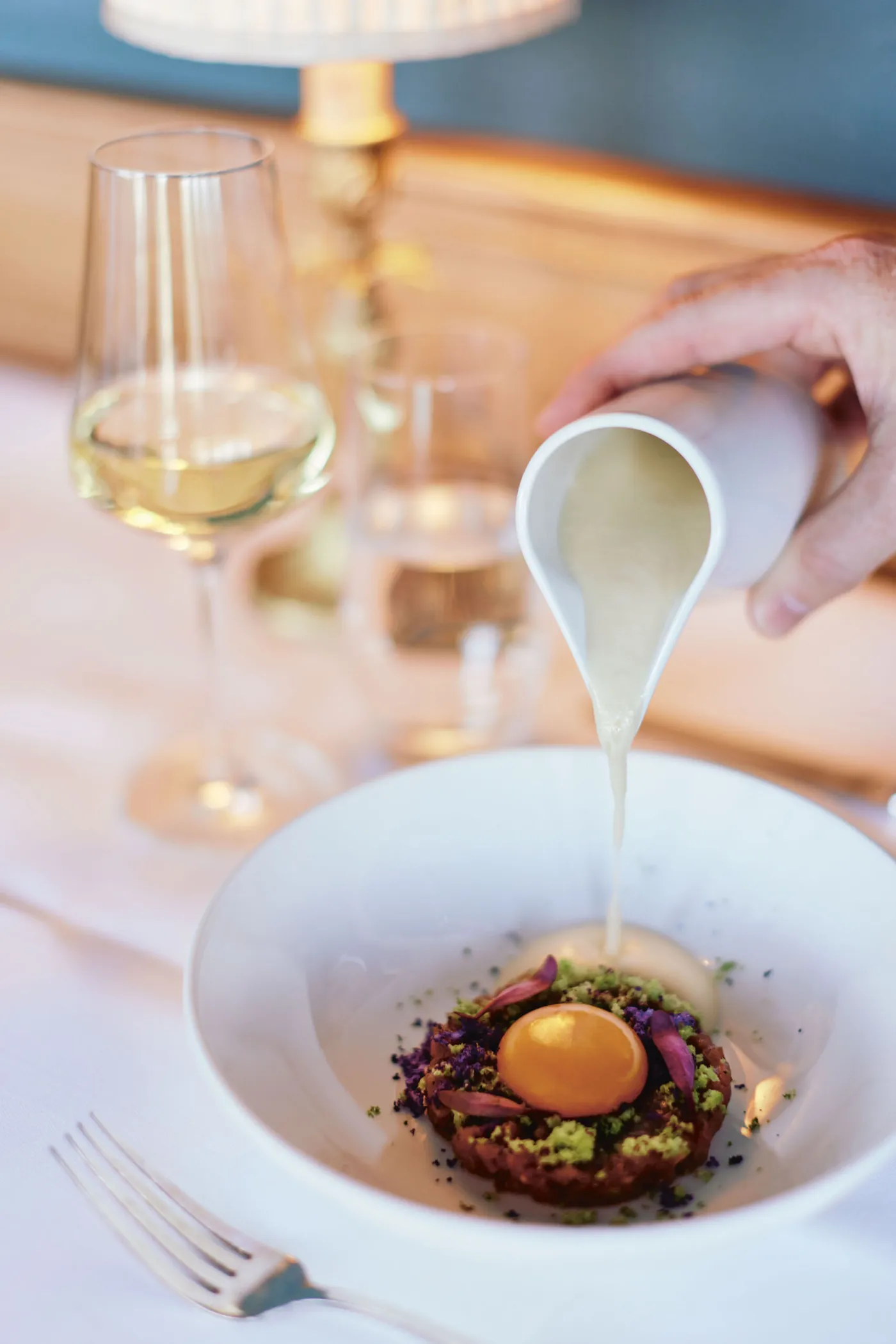 In einschlägigen Kreisen ist es schon lange bekannt: Maître Mahler und Chef Schaefer sind der Inbegriff eines eingespielten Teams. Küche und Service greifen ineinander wie ein wohlkalibriertes Uhrwerk, ohne auch nur ansatzweise technisch zu wirken. Nichts lenkt von der sinnlichen und genussvollen Erfahrung ab, die einem diese eingespielte Brigade kredenzt. Schliesslich ist genau dies der Zauber, der grosser Handwerkskunst innewohnt. Absolute Präzision in der täglichen Arbeit? Selbstverständlich. Ein erstklassig informierter, topmoderner Service? Fraglos. Geniale Produzenten und dazu ein prononcierter regionaler Fokus? Geschenkt.