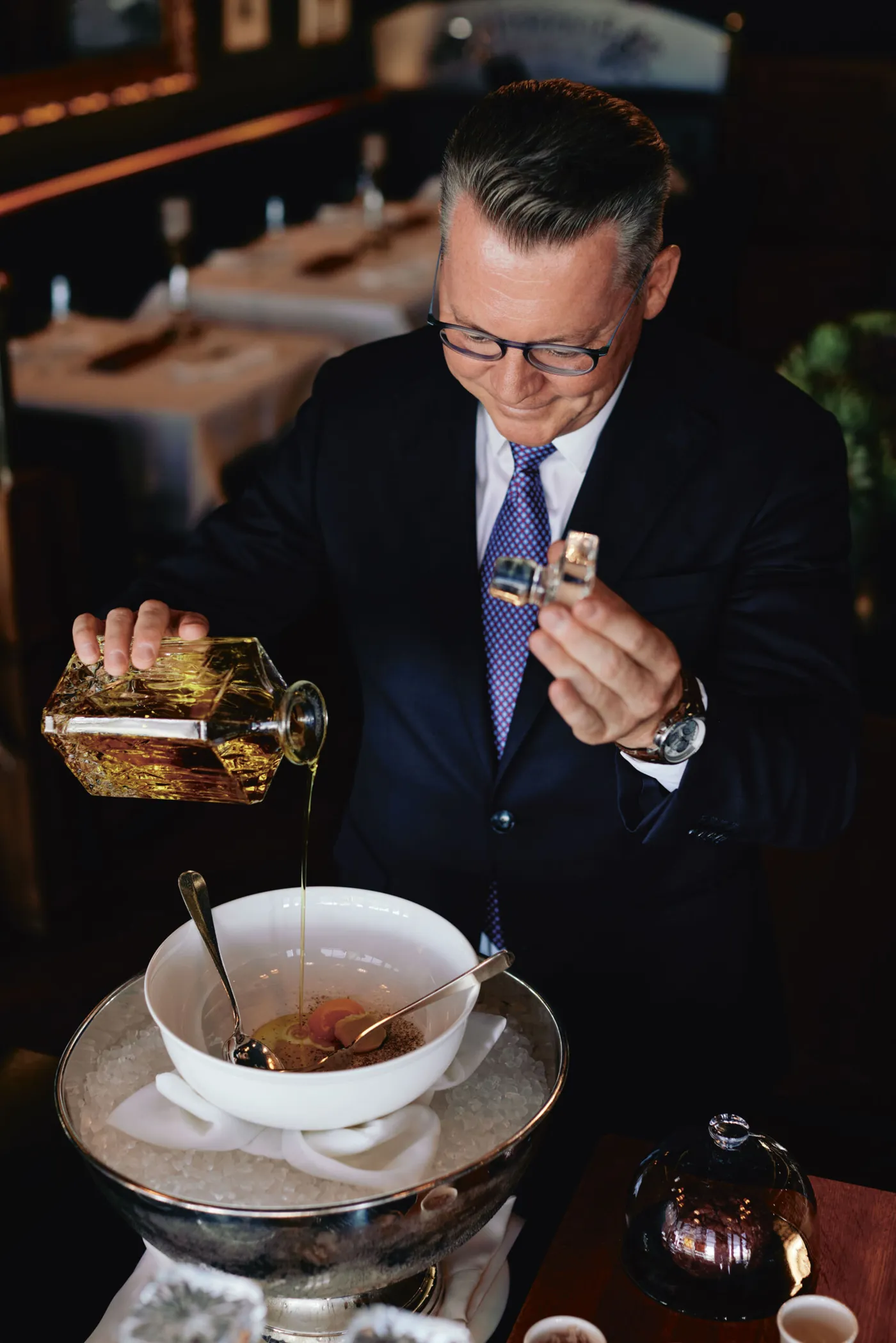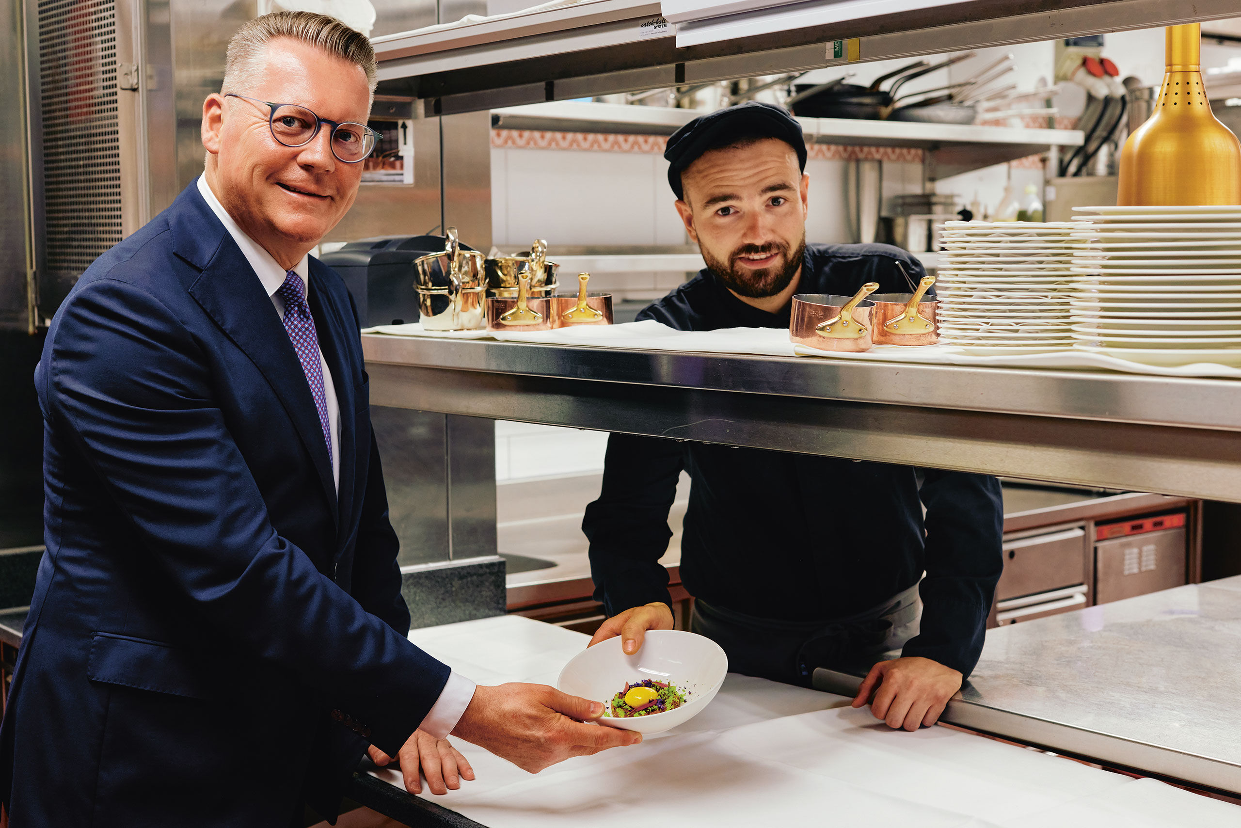 Zurzeit gibt Hervé Mahler neben dem Gästewohl und der Sicherstellung der grossen Klasse dieser Lokalität noch etwas anderes zu denken. Die Pandemiemassnahmen waren auch hier deutlich zu spüren. Nun geht es darum, aufzubauen. Und weil ein Maître d'Hotel sich um weitaus mehr kümmert, als der Gast mitbekommt – und mitbekommen sollte –, macht auch dies einen nicht unwesentlichen Teil des Geschäfts von Hervé Mahler aus. Als Verantwortlicher für Personal und Ausbildung laufen beim Maître alle Fäden zusammen. «Die Lage ist in der Tat angespannt», sagt Hervé Mahler. «Gute Leute finden in der Gastronomie immer einen Job, immer. Die Szene ist bestens vernetzt. Aber man merkt schon, an Nachwuchs fehlts.» Deshalb wird zurzeit die Ausbildung grossgeschrieben. Es laufen bereits mehrere Kampagnen und einen wesentlichen Teil davon machen die Quereinsteiger aus. Besonders ambitionierte, motivierte Quereinsteiger sind ausgesprochen gefragt.