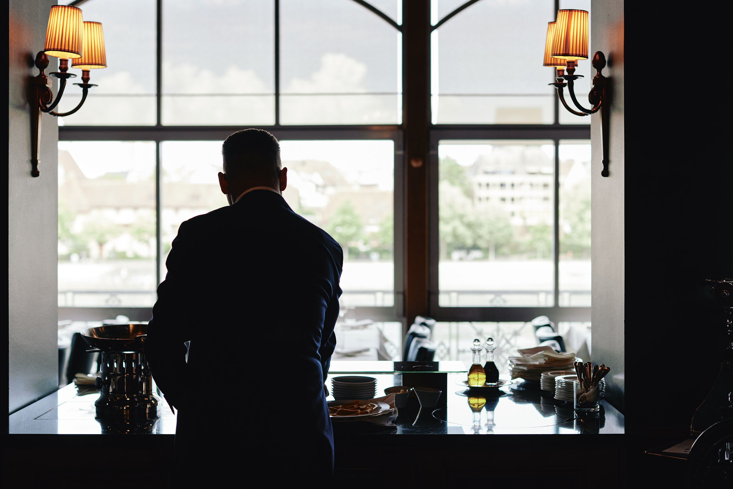 Monsieur Mahler ist eine Erscheinung, wie man sie nicht mehr jeden Tag trifft. Akkurat ist das graumelierte Haar gekämmt, makellos sitzt die Livrée, der Blick ist wach und aufmerksam. Schon zur Begrüssung liegt der Charme in seinem Lächeln. Man merkt im ersten Moment (und danach immer und immer wieder): Dieser Mann ist Gastgeber durch und durch. Mit Vornamen heisst Monsieur Mahler Hervé, aber angesichts dieser würdevollen Person ist man geneigt, die Höflichkeitsform zu verwenden – aus Respekt gegenüber seiner freundlichen, stets zuvorkommenden Art, aber auch aus Respekt gegenüber der Tatsache, dass dieser Mann die Brasserie des Grand Hotel Les Trois Rois mit all ihrer Eleganz und ihrer Geschichte repräsentiert. Ja, Hervé Mahler verkörpert, was man in Basel als «Monsieur» bezeichnet.