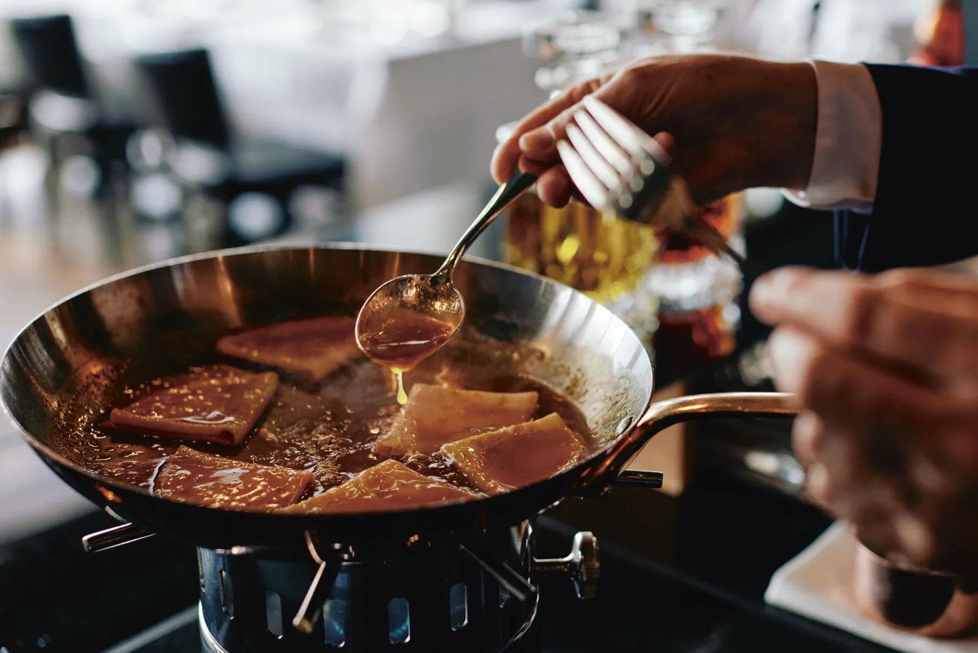 Natürlich fordert der Job als Gastgeber seine Opfer. Der Anspruch ist hoch, es geht darum, Beziehungen zu pflegen, Bedürfnisse zu erkennen, schnelle Entscheidungen zu treffen, den Betrieb und das Business zu kennen. Selbst Hervé Mahler begibt sich nach wie vor in die Zimmerstunde. Das heisst: Schon am Morgen bereit sein, um den Mittagsservice sicherzustellen, danach eine längere Pause – das ist die besagte Zimmerstunde –, um dann frisch in den Abendservice zu starten. Es sind manchmal lange, sehr lange Tage, aber es sind lohnende Tage. Wer sich in diesem Business behauptet, der hat das Zeug zum hervorragenden Gastgeber. Oder wie es Hervé Mahler sagt: «Viel investieren und dann nicht da sein, wenn es darauf ankommt, das geht natürlich nicht.» Dass sich die Investition lohnt, zeigt seine Karriere. Längst ist sein Wirkungsraum nicht mehr nur auf die Brasserie beschränkt, als Maître d’Hotel – einer höchst angesehenen Funktion – ist er beispielsweise auch für Events und Caterings zuständig.