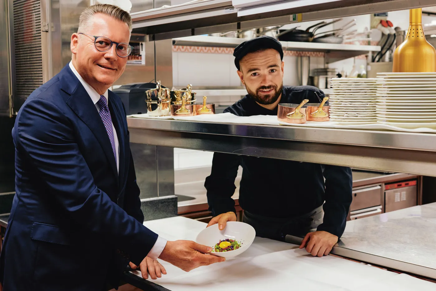 Hervé Mahler ist aber nicht nur der Mann, der in der Brasserie den Betrieb orchestriert, er ist auch Maître d'Hotel der angesehensten Herberge am Rheinknie, dem historischen Grand Hotel Les Trois Rois am Blumenrain. Gemeinsam mit Chef de Cuisine Thomas Schaefer stellt er sicher, dass die Brasserie einer der hellsten Sterne am Gastrohimmel der Region bleibt.