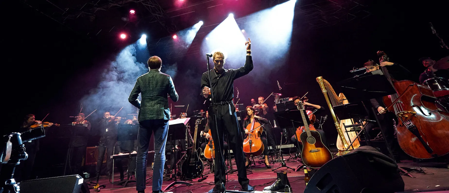 Gut gelaunt und voller Leben springt Sam Himself für den Soundcheck auf die Bühne. Hinter ihm: das 20-köpfige Sinfonieorchester Basel. Instrumente werden gestimmt, Positionen optimiert. «Zuletzt noch die Harfe; tönt gut, wir können beginnen», hört man den Tonmeister durchs Mikrofon.