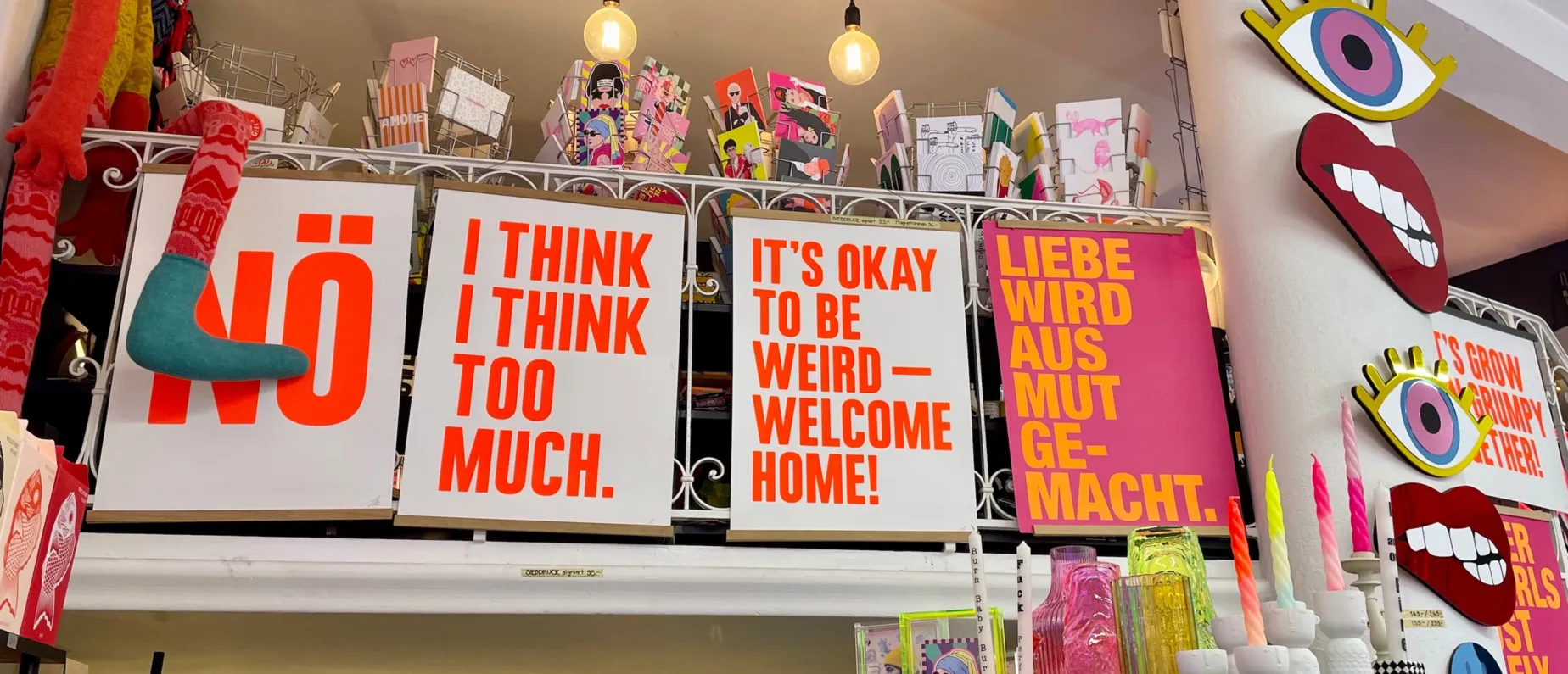 Auch ohne Eintrittsticket kannst du hier Plakate, Postkarten, Wohnaccessoires, Spiele und coole Designprodukte shoppen. Zudem natürlich exklusive Künstler- editionen. Ein Ort der Inspiration und ein Geheimtipp für alle, die besondere Geschenke suchen.