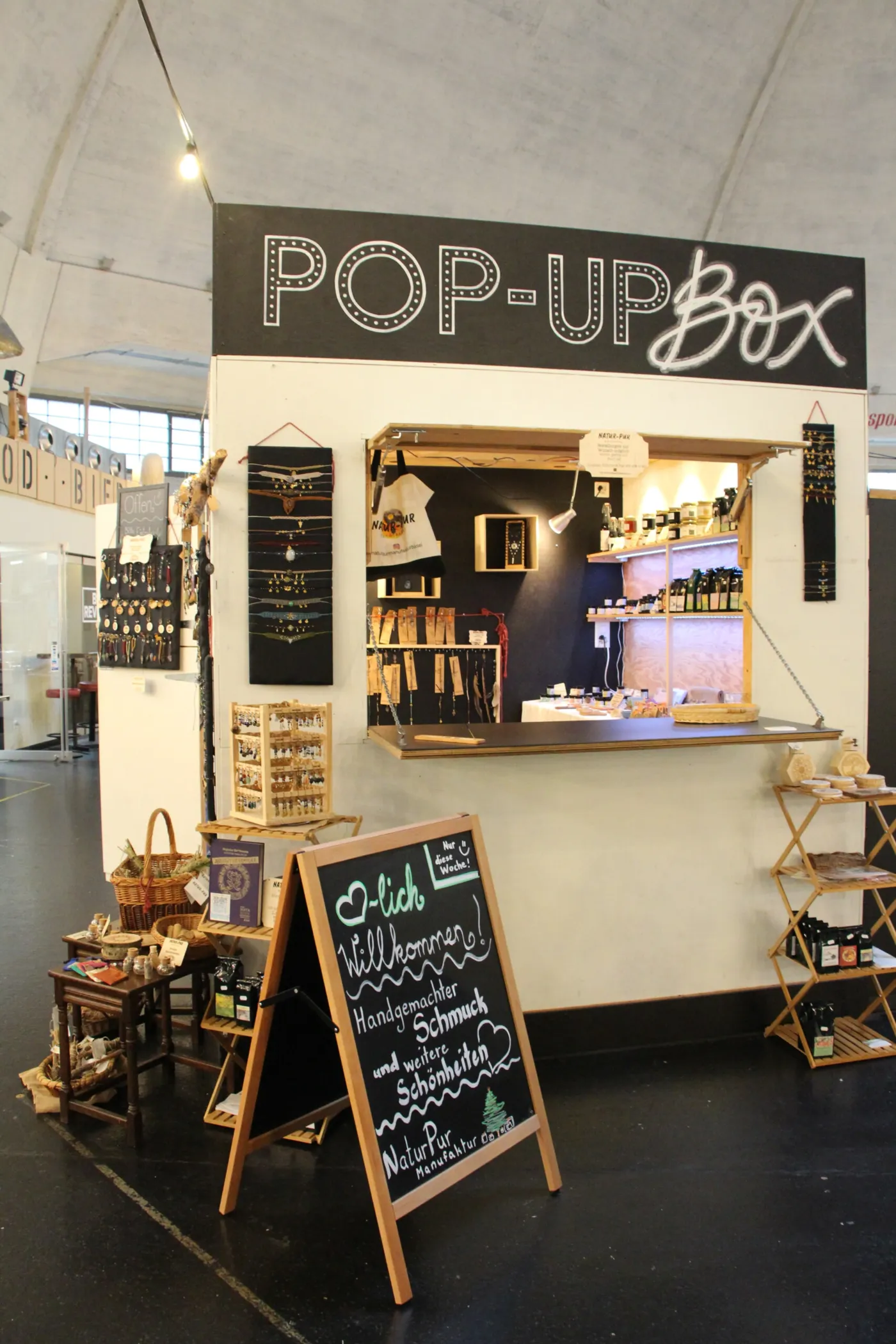 Ob Schmuck, Blumen, Kleider, Kunst, Kulinarik oder Kosmetik – als Besucherin oder Besucher der Markthalle entdeckt du an der Pop-up-Box wöchentlich wechselnde, spannende, lokale Brands. Vielleicht bist du aber auch selbst Unternehmerin oder Erfinder, Gründerin oder Ideenlieferant deiner eigenen Produkte und möchtest die Gelegenheit nutzen, dich und dein Mini-Unternehmen mal in Szene zu setzen – dann bietet die Pop-up-Box der Markthalle das ideale Setting.