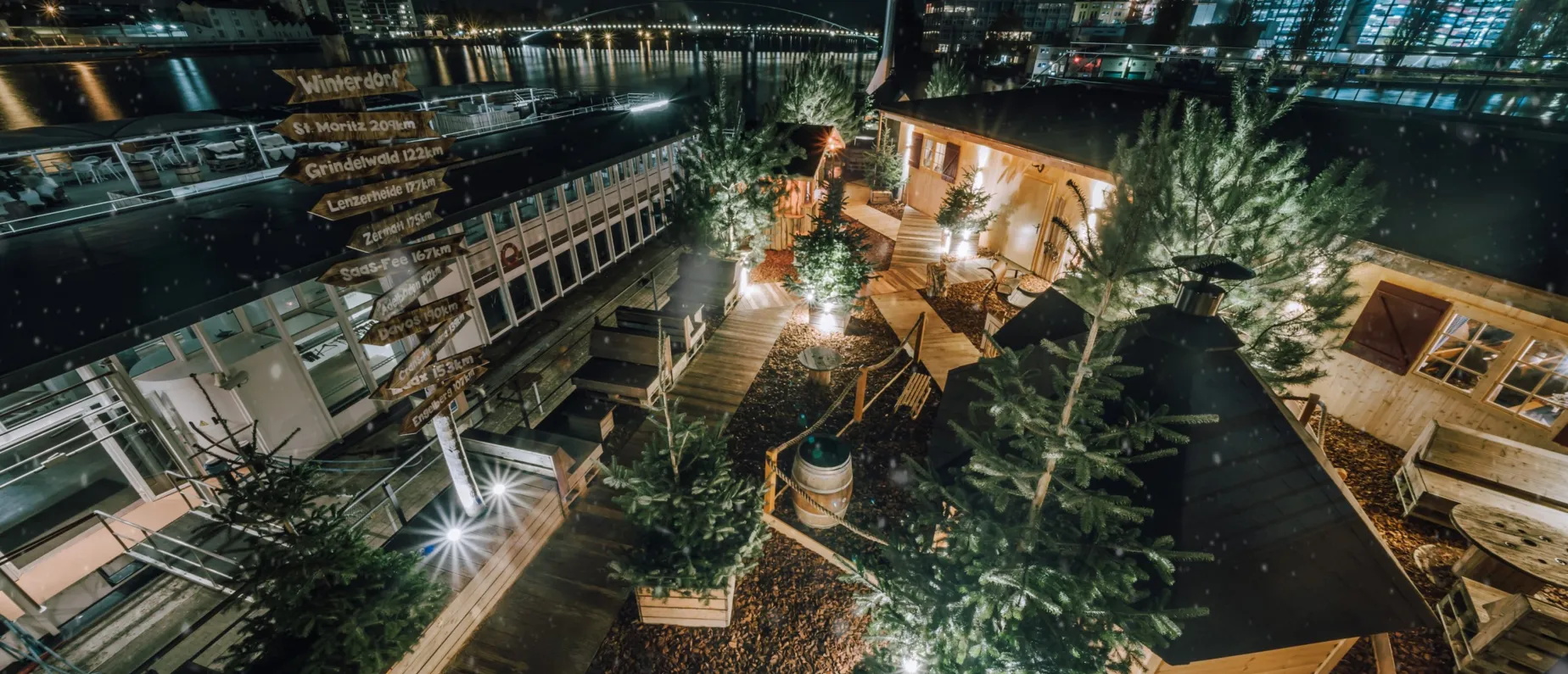 Wie die das in dieser kurzen Zeit so magisch, zauberhaft und romantisch hinkriegen, kann dir aber herzlich egal sein. Denn was zählt, ist einzig, dass du hier einen wunderbaren Abend in winterlicher Atmosphäre verbringen kannst – und zwar direkt am Rhein. Wähle zwischen Chalet, finnischer Kota (8 bis 12 Personen) und Gondel (2-4 Personen) und stell dir vor, du wärst irgendwo hoch oben eingeschneit in den Schweizer Bergen. Schliesse die Augen, lass dich und deine Sinne vom Duft von Tannenbäumen, flüssigem Käse und Glüh Wein betören – und geniesse den wundervollen Abend im Winterdorf.