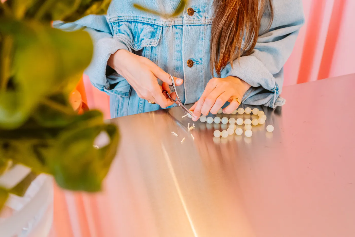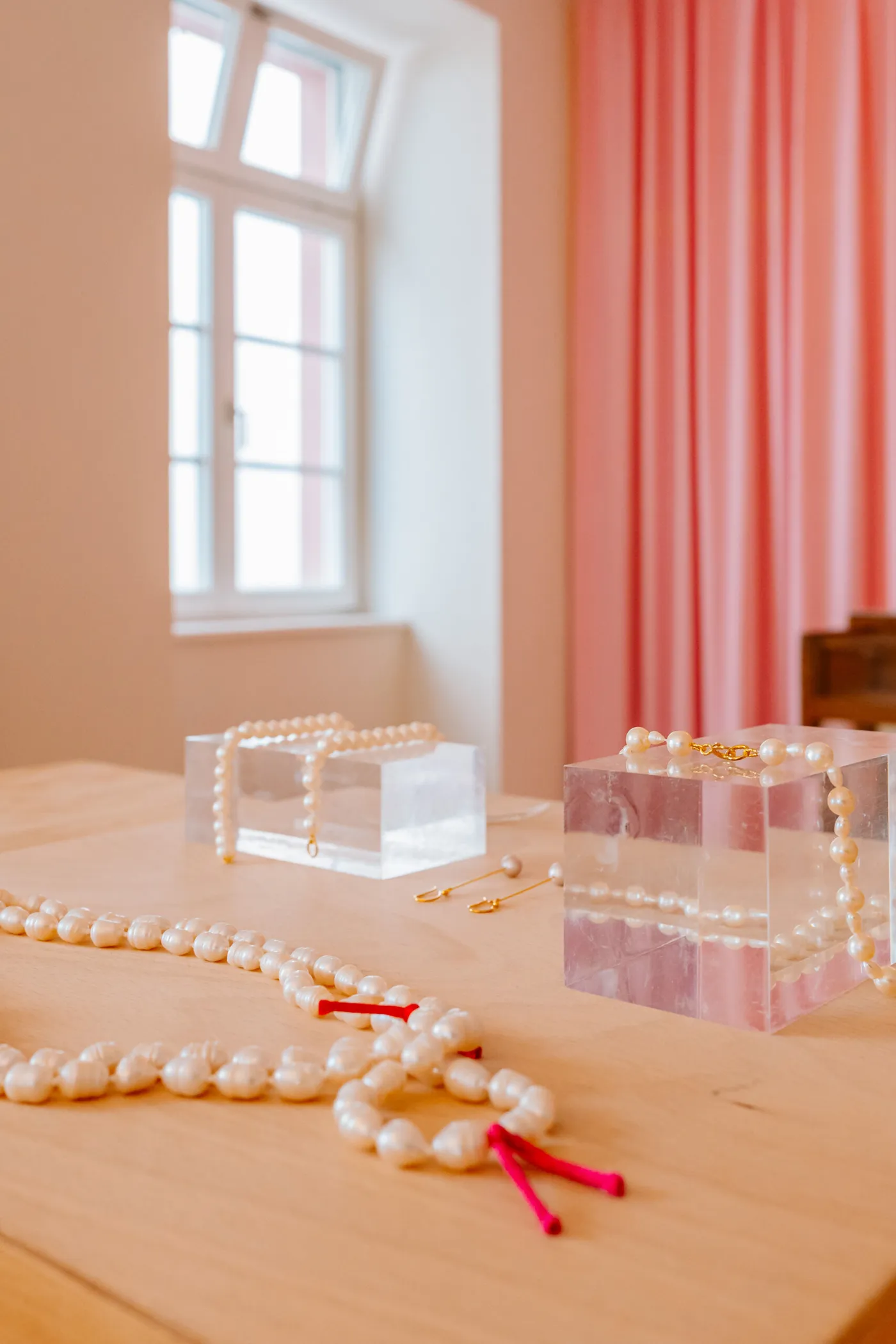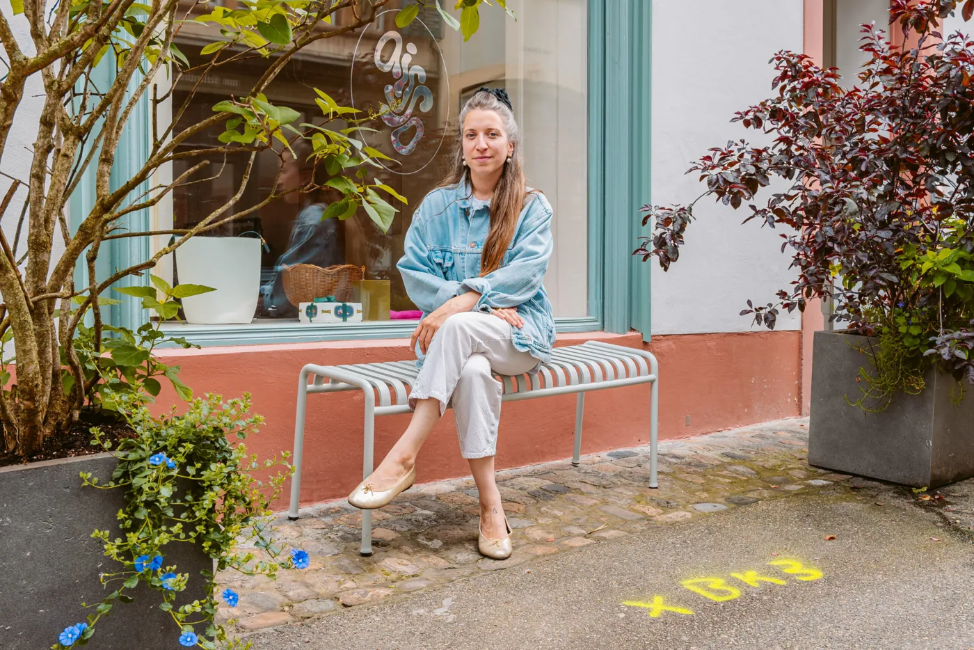 Aisso kennst du vielleicht bereits der Feldbergstrasse. Fünf Jahre lang hatte Jenny ihren Laden an dieser hippen Meile im Kleinbasel, fertigte hier auch ihre Schmuck-Kollektionen an. «Irgendwann wurde mir dieser Ort jedoch zuviel», erzählt sie auf dem Bänkli vor ihrer neuen Oase, während die Vögel lautstark zwitschern und ein paar Touristinnen die pittoreske Gasse für ein Selfie nutzen. Jenny brauchte eine Pause, zog sich für einige Zeit zurück, verkaufte ihren Schmuck nur noch über Instagram. «Anfang 2024 kam der Wunsch nach einem eigenen Raum zurück. Ich wollte wieder einen Ort, den ich gestalten und bespielen kann», erzählt sie. So fand sie dieses beschauliche Flecklein inmitten der Altstadt.