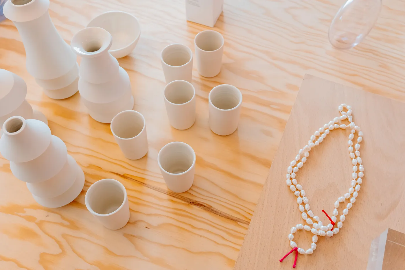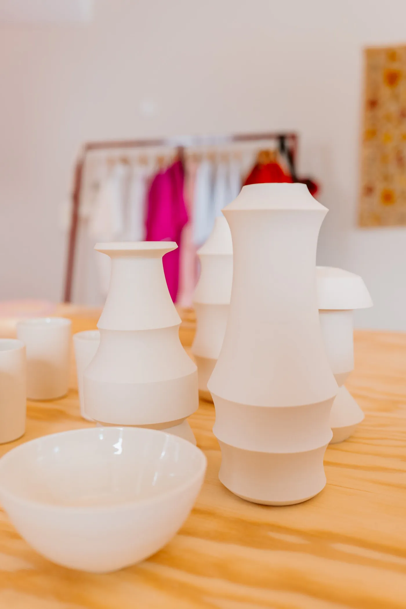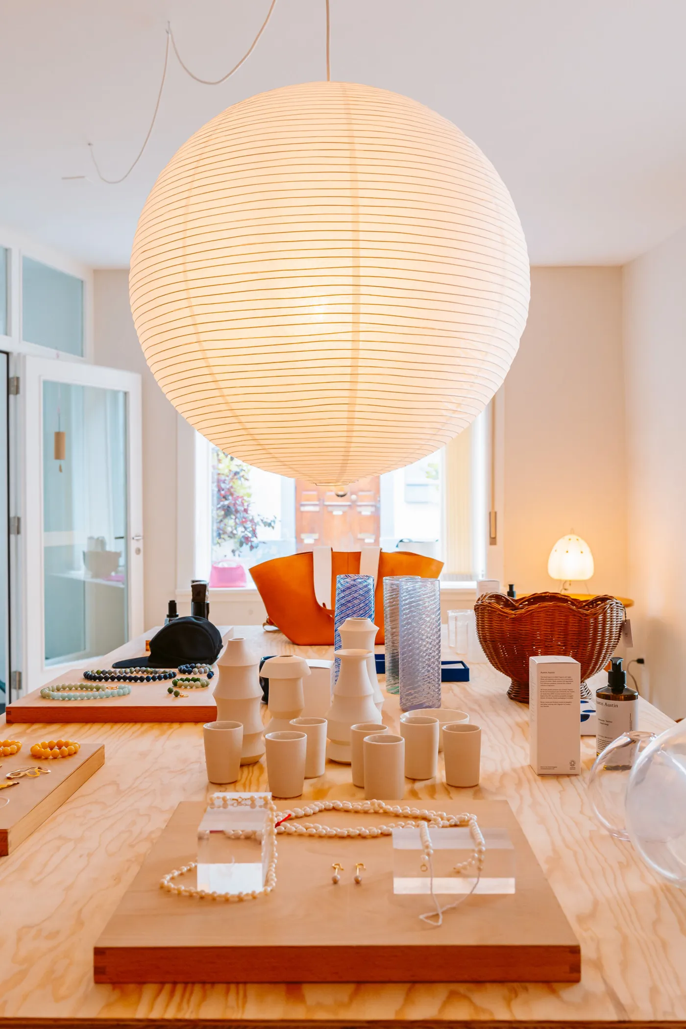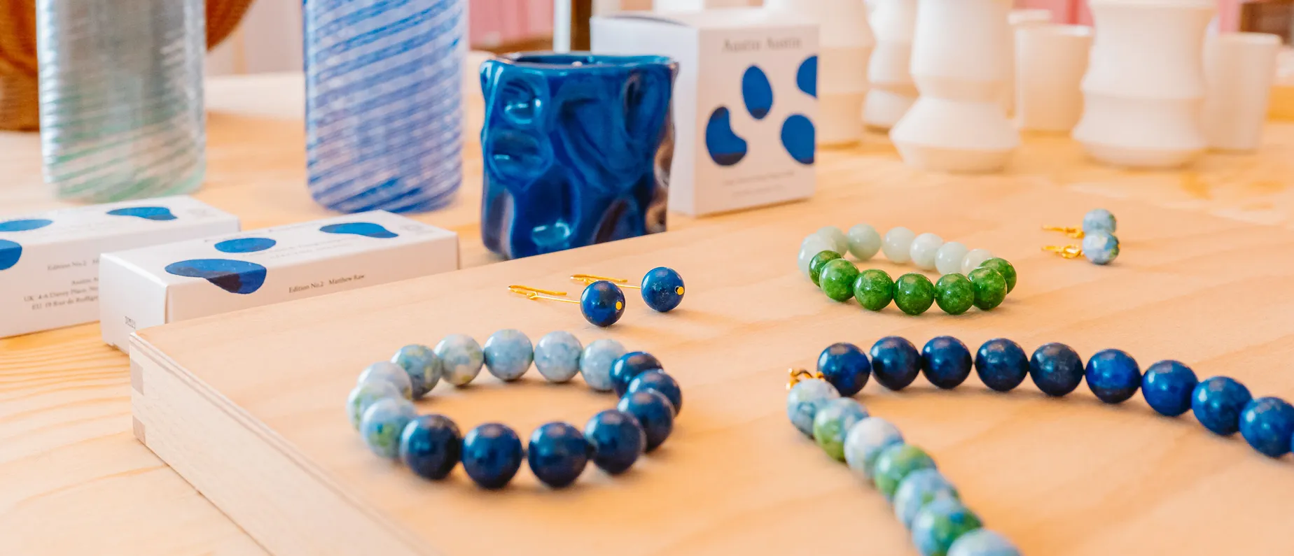 Neben Jennys filigranem Schmuck gibt es bei Aisso weitere aussergewöhnliche Labels aus Basel zu entdecken: Von Laura Sattin kommen zauberhafte mundgeblasene Vasen und Gläser. Die skulpturalen Keramikobjekte sind von James Page, die Käppis, Bauchtaschen und T-Shirts von Jennys Lebenspartner Simon Burgunder. Ergänzend findest du zum Beispiel Kleider von Malaika Raiss aus Berlin, Körbe aus Kopenhagen oder Seifen vom Familienunternehmen Austin Austin aus Norfolk. «Ich will kleine Labels unterstützen», so Jenny. «Mir ist wichtig, dass ich weiss, wo die Dinge produziert werden. Zudem möchte ich, dass es die Produkte nicht noch in anderen Basler Läden gibt.»