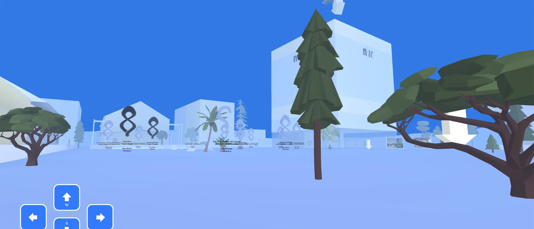 Der virtuelle Campus erinnert dabei an eine Game-Welt. Je länger du dort deine Zeit vertreibst, dich auf dem Campus umsiehst und dir ein Bild von den Studiengängen machst, desto mehr verändert sich diese Welt: Es wachsen Bäume in die Höhe, die nach und nach einen ganzen Wald bilden und sinnbildlich für deinen gesammelten Erfahrungsschatz stehen. Letztendlich verkörpern die heranwachsenden Bäume dein Wissen und deine Fähigkeiten, welche du während deiner Studienzeit sammelst.