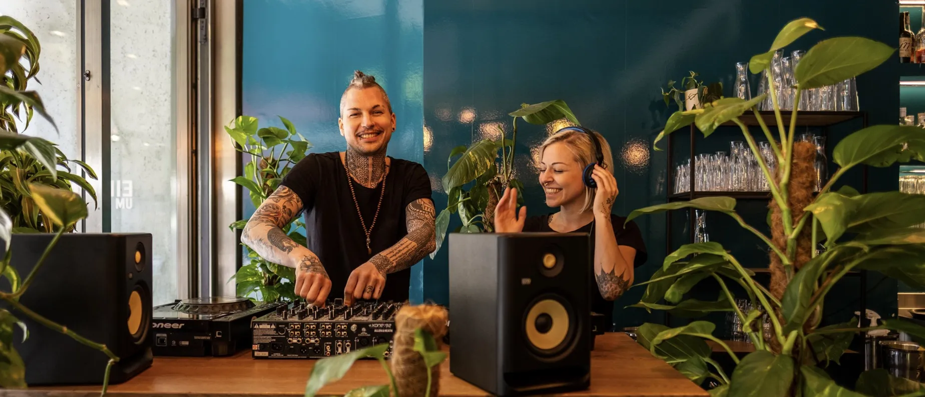 Thomas aus dem Marketing kann es kaum erwarten. Er hat den Rumble im Nomad angesetzt, er macht den Jungle parat. Das Team war sofort begeistert. Michele und Milena von der Krafft-Familie spielen sogar DJ-Sets. Setting und Line-up machen aus dem Afterwork-Happening ein Mini-Festival. Die Musik wird im Laufe des Abends schneller, Rhythmus und Gesang steigern sich, die Stimmung auch. Im Finale kommen sogar animalische Töne dazu – «dann ist der Junglebeat perfekt», sagt Michele. Er ist DJ, Line-up-Verantwortlicher und Barkeeper: «Je später, desto knackiger, trommelnder, ballernder.» Hier geht's zum Line-up!