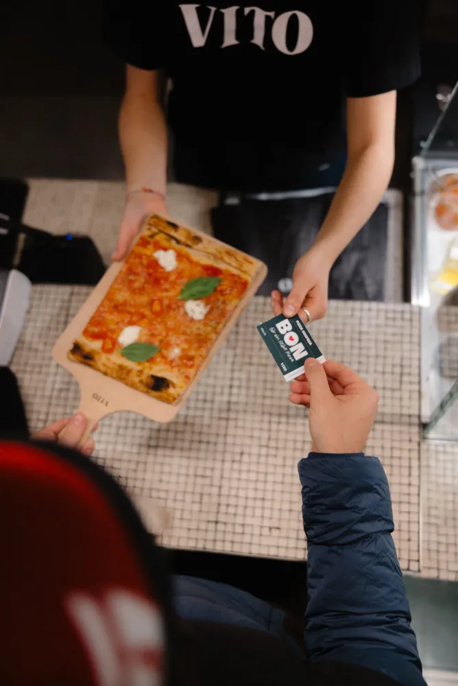 Margerita, Funghi, scharfe Salami, vegan mit viel Gemüse oder doch lieber die ganz klassische Prosciutto? Bei VITO kriegst du sie alle – einzeln oder im Meter gemischt für dich und deine Freunde. Und natürlich wenn gewünscht immer mit frisch geriebenem Parmesan oder Trüffelöl. Damit die Freude an sonnengereiften Tomaten und cremigem Mozzarella möglichst vielen Leuten ermöglicht werden kann, hat sich das Basler Gatro-Unternehmen vor ein paar Jahren für die kalten Wintermonate etwas ganz Besonderes ausgedacht: Die solidarische «Pizza Sospesa».