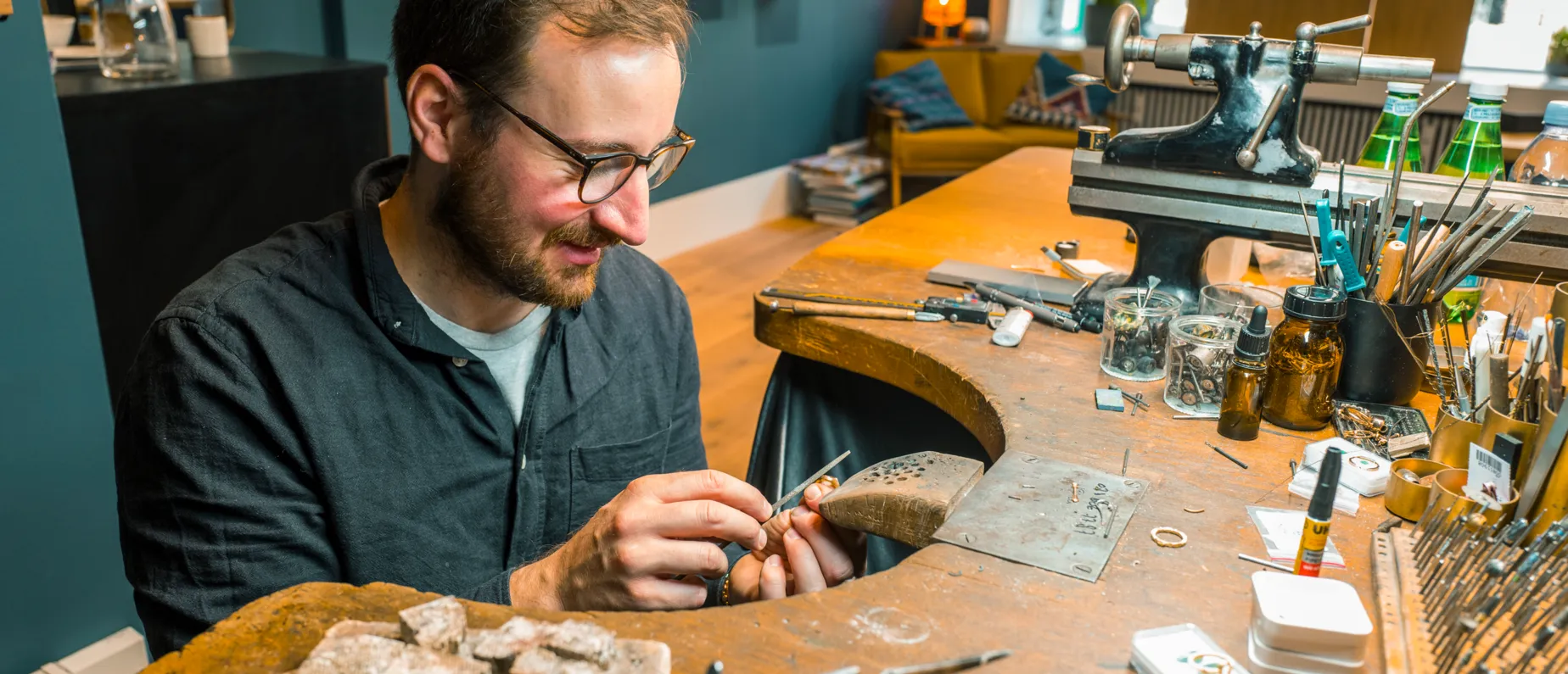 Gsponers Weg in das Goldschmiedehandwerk erfolgte erst im zweiten Anlauf. Nach der Handelsmittelschule erlangte er die kaufmännische Berufsmatur, merkte aber schnell, dass Büroarbeit nicht das ist, was ihn reizt. Ein Kurs weckte seine Begeisterung für das Goldschmiedehandwerk. Bei der bekannten Goldschmiede Zinstag absolvierte er die Berufslehre und stieg später zum Atelierleiter auf, bildete auch Lehrlinge aus. Nach 15 Jahren wagte er den Schritt in die Selbstständigkeit und eröffnete vor rund zweieinhalb Jahren in der Markthalle sein eigenes Atelier und Verkaufsgeschäft.