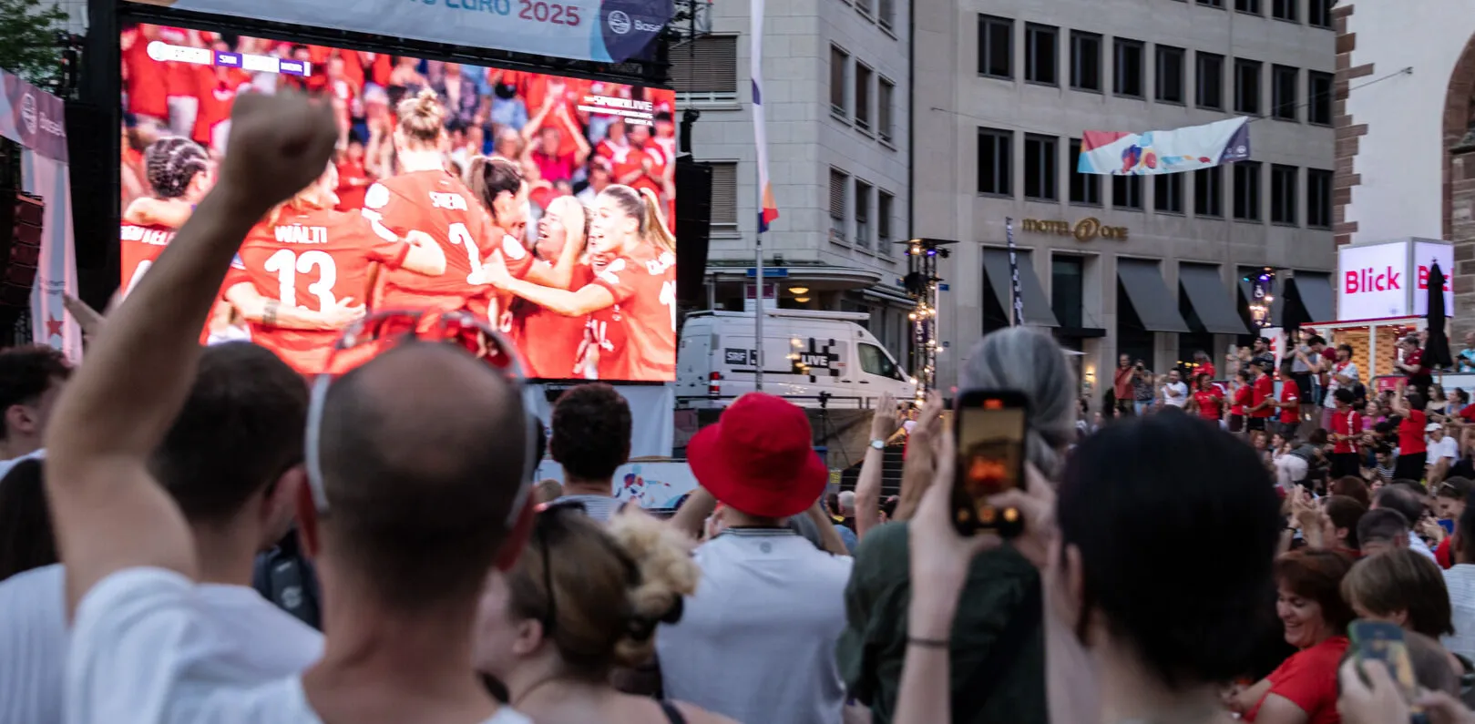 Ob mit Bier in der Hand oder mit Glacé im Schatten – zur EM gehört Public Viewing wie der Ball zum Anspiel. Und Basel liefert. Während der UEFA Women’s EURO 2025 laufen die Spiele nicht nur im Stadion, sondern auch quer durch die Stadt.