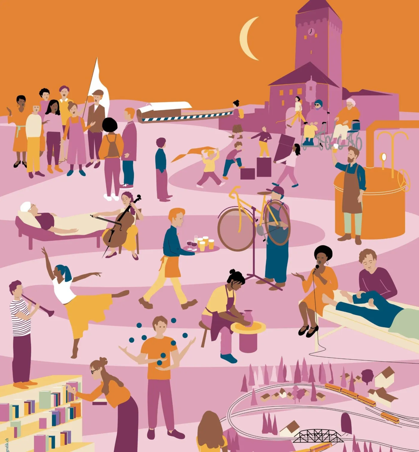 Für Aktive bietet die JUKIBU Bibliothek einen Kalligraphie Workshop an, bei dem du japanische und arabische Schriftzeichen kennenlernst und beim ChezVelo faltest du klassische Velokäppis aus Papier. Richtig praktisch wird es bei Urbanroots, wo der Urban Gardening Crash-Kurs einen Einblick ins Ansäen von Gemüse und Kräuter gewährt – das eigene Anzuchtstöpfchen mit Erde und Saatgut darf danach natürlich mitgenommen werden. Im Badhüsli gibt’s Tanzworkshops und Live-Musik und auch für Kids hält der Abend mit einer musikalischen Reise mit Balz Aliesch im Pflegehotel St. Johann ein richtiges Programmjuwel bereit. Und falls du dich schwertust mit einer Entscheidung bei so vielen Highlights, kannst du dich auch einfach durch die Strassen treiben lassen – die Kultur ist an diesem Abend überall.