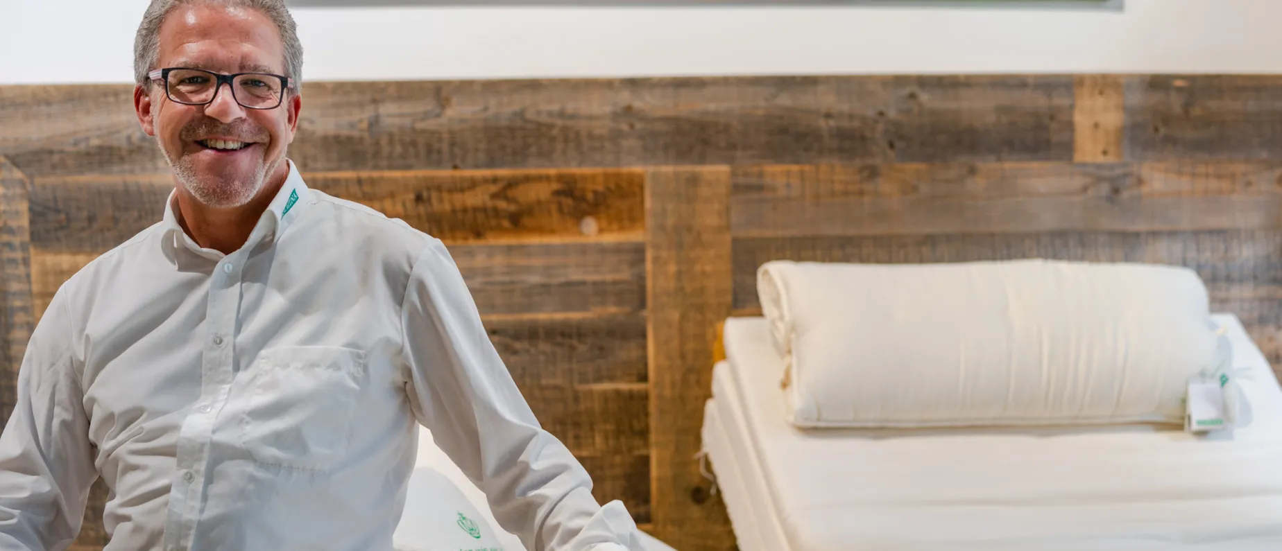 Bei seiner Beratung oder im Schlafcoaching versucht er herauszufinden, welche Faktoren es bei dir sind, die deinen gesunden Schlaf stören. Schlaf kann viel mehr als nur Müdigkeit beseitigen. Die nächtliche Regeneration ist essenziell für diverse physiologische Prozesse, welche die körperliche und geistige Gesundheit des Menschen auf zahlreichen Ebenen mitentscheiden. Mit dem wissenschaftlich fundierten Modell des bioenergetischen Schlafs lässt sich dieses enorme Potenzial besonders effizient ausschöpfen. «Ich kann nicht einfach ein beliebiges Kissen aus dem Regal ziehen und sagen – das ist es. Aber, es sind oft genau solche kleinen Dinge, die hilfreich sein können. Denn auch ein Kopfkissen sollte individuell angepasst werden.» Hans-Georg Reichert nimmt sich also deinen Schlafproblemen mit Lösungen an, die auf dich abgestimmt sind und langfristig sein sollen. Du sollst dich mit einem Bett von Samina schliesslich für die nächsten 25-30 Jahre wohlfühlen und gut schlafen können. Wenn es um dein Bett geht, solltest du auf dein Wohlfühlgefühl hören. Vor dem Kauf empfiehlt es sich auf jeden Fall, dieses ausgiebig zu testen und probezuliegen. Damit dir die Wahl einfacher fällt, kannst du dabei auch die unterschiedlichen Materialien erfühlen, spüren und ertasten. Denn guter Schlaf ist langfristig gesehen eine wichtige Grundlage für deine Gesundheit.