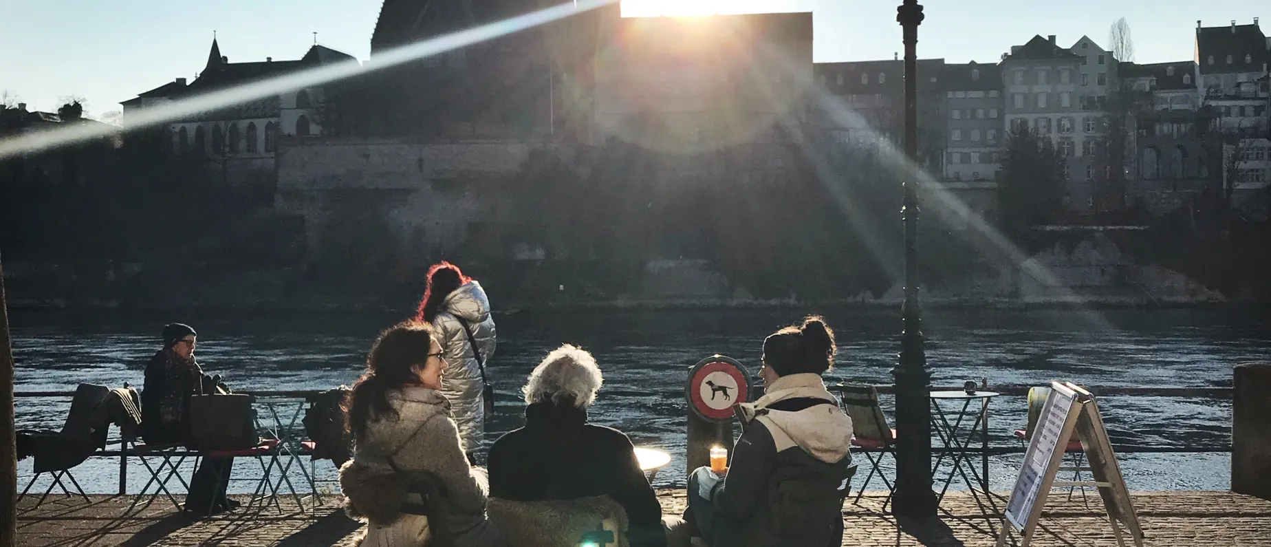 Bei diesem Sonnenschein spielen meine Gefühle ein bisschen verrückt. Deshalb will ich vorfreudig schon mal etwas Sommer schnuppern, zumindest mit dem Auge. Und das gelingt kaum besser als am Kleinbasler Rheinufer.