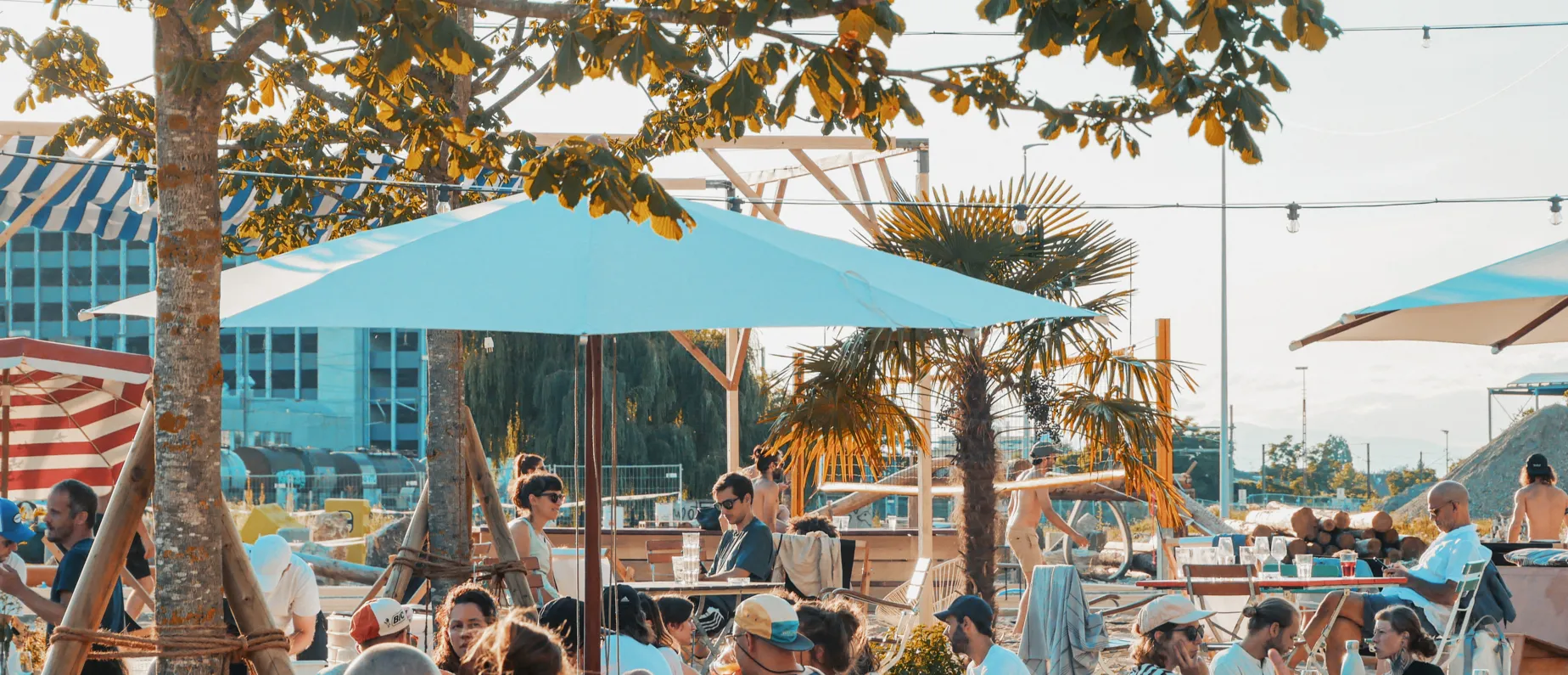 Was nicht heissen soll, dass es keinen Platz für Genuss gäbe. Auf der Piazza schlürfst du auf dem Liegestuhl erfrischende Schorlen vom Bauernhof, Wein, Bier und Longdrinks. Zuckergetränke gibt's hier keine. «Wir wollen die Fläschliwirtschaft radikal reduzieren, deshalb bieten wir keine Süssgetränke an», so Elias. Dafür was zwischen die Zähne. Eine Bauernplatte mit Wurst, Käse und Brot zum Beispiel. Oder Hummus mit Knäckebrot. Alles, was es an einer Schweizer Strandbar halt so gibt.