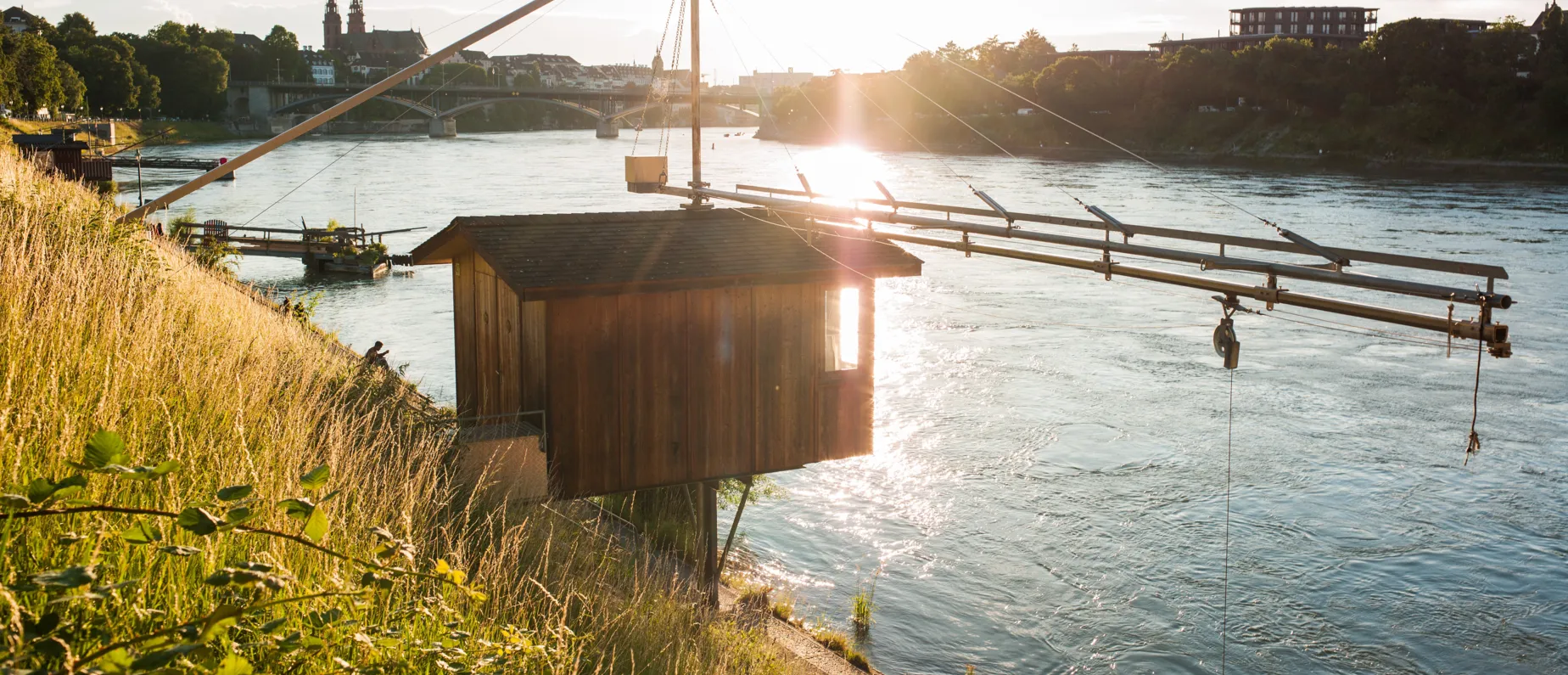 Keine Angst – dieser Fischergalgen befindet sich auch bei Hochwasser noch immer in sicherer Höhe. Das 14 m2 grosse Häuschen unterhalb des St. Alban-Rheinwegs war in der Vergangenheit immer wieder mal Gastgeber ganz besonderer Erlebnisse. So diente es beispielsweise auch schon als Hotelzimmer. Denn eine einzigartige Location wie diese muss einfach mit ebenso einzigartigen Angeboten bespielt werden.