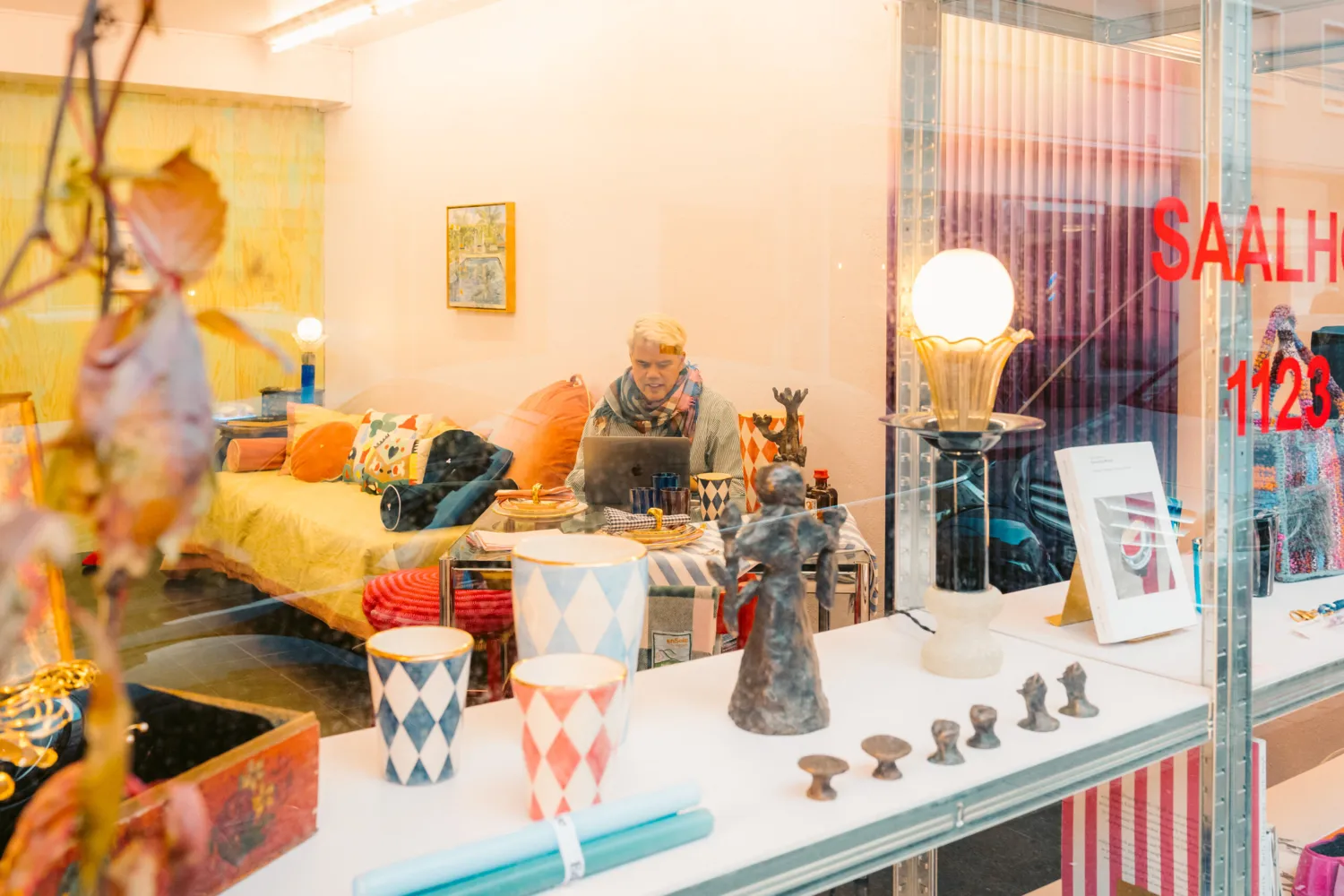 Das Ergebnis kam an. Wer bei Jean-Claude zu Besuch war, wollte wissen, woher all die schönen Gegenstände, die Lampen, die Bücher, die Kissen, das Porzellan stammen. «Ich habe jeweils die Kontakte vermittelt. Und mir irgendwann gedacht, warum verkaufst du die Dinge eigentlich nicht selbst?» Zwar komme er nicht vom Detailhandel, aber eine Galerie sei ja quasi ähnlich. «Du bekommst für dein Geld einfach sehr wenig Ware …» Bei Saalhof 1123 gibt es deutlich mehr fürs Geld als in einer Galerie. Wobei Jean-Claude betont, bei ihm müsse man nichts kaufen, er freue sich über alle Besuchenden, man dürfe auch ungeniert einfach ein wenig stöbern oder draussen aufs Bänkli sitzen.