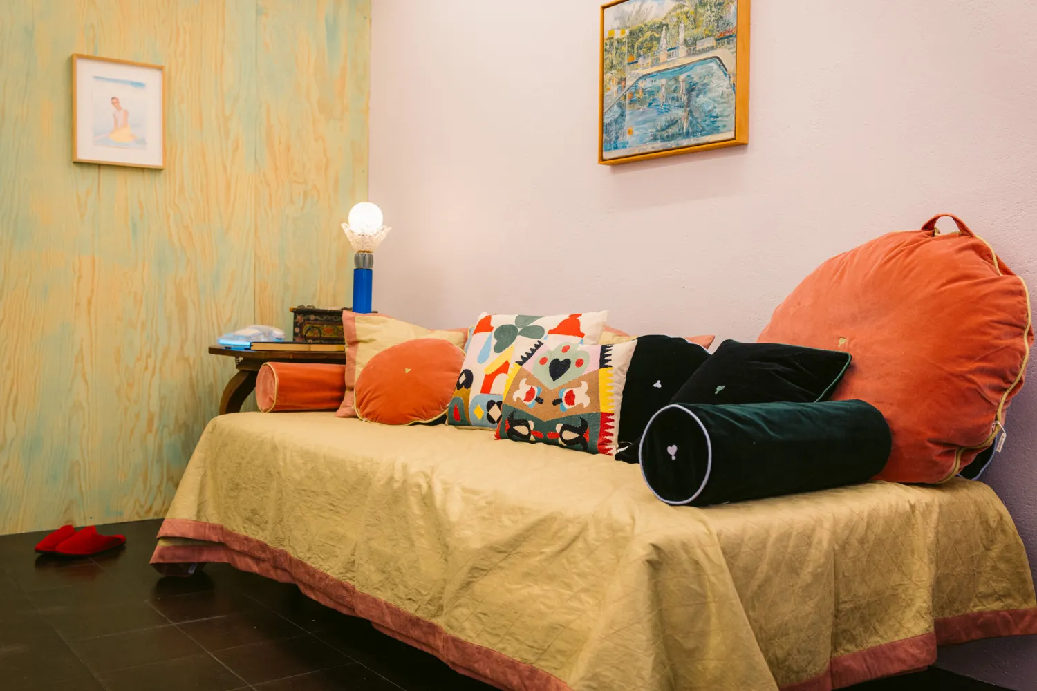 Die Bilder an der Wand, die Bücher auf dem Tisch: Arbeiten von Jean-Claudes Freunden. Antiquitäten, historische Suzanis oder bestickte Kaftane: Von Auslandreisen mitgebracht oder in Auktionshäusern ersteigert. Mit grosser Sorgfalt und enormer Leidenschaft inszeniert er seine Schätze nicht nur im Laden sondern auch online. «Wenn ich das Ganze nicht professionell mache, wird es den Produkten, den Designerinnen und Designern nicht gerecht», ist er überzeugt.