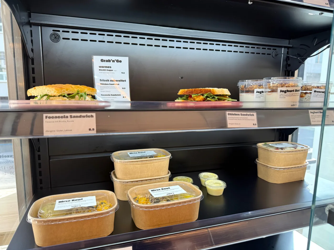Morgens gibt es Kaffee und Frühstück, Joghurt-Bowls oder Croissants. Mittags stehen Bowls und Sandwiches im Grab-and-Go-Konzept auf dem Menu. Am Wochenende kommen Brunch-Optionen dazu mit Mini Frittata, Avocado-Toast, Porridge, Pancakes und mehr.