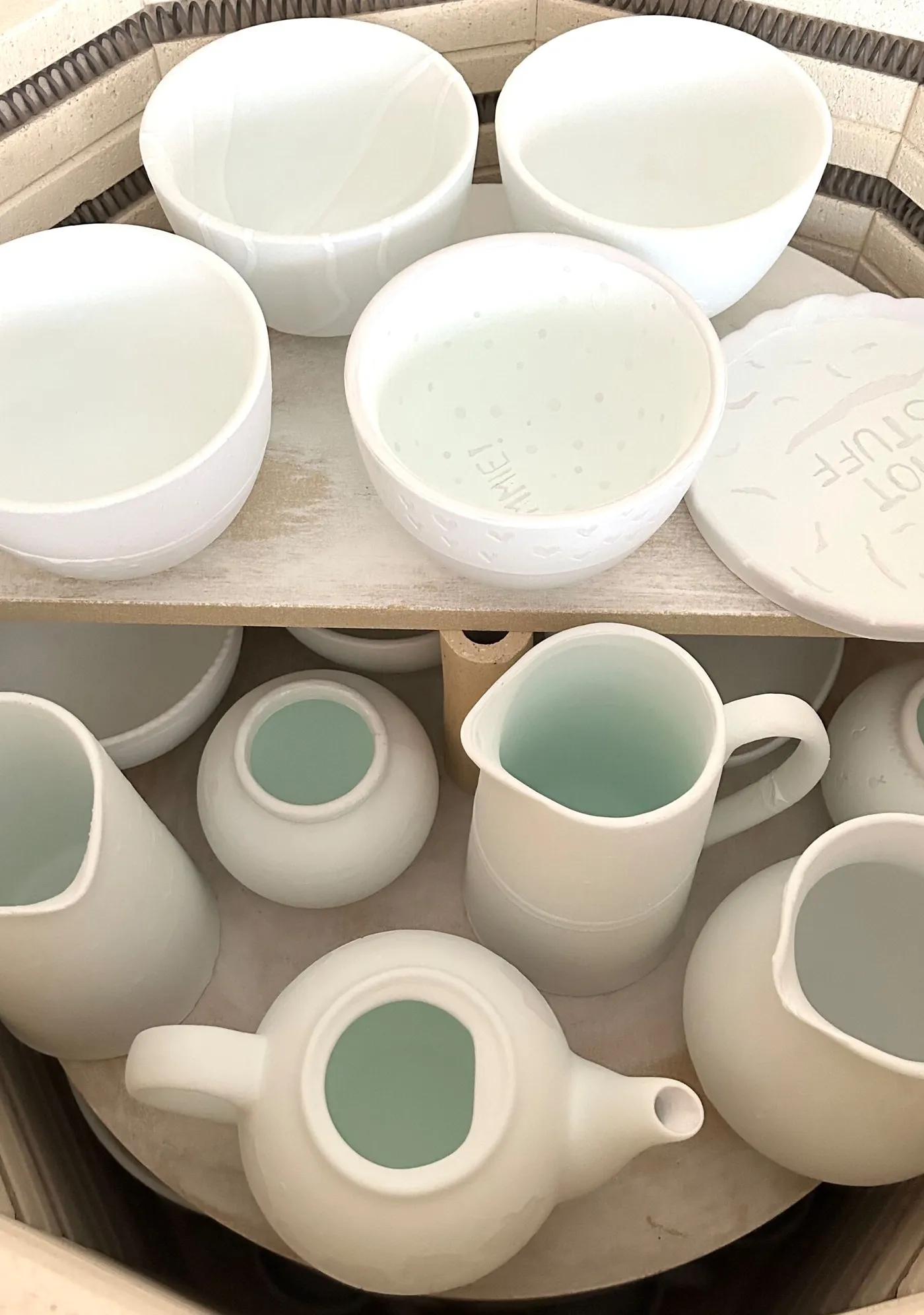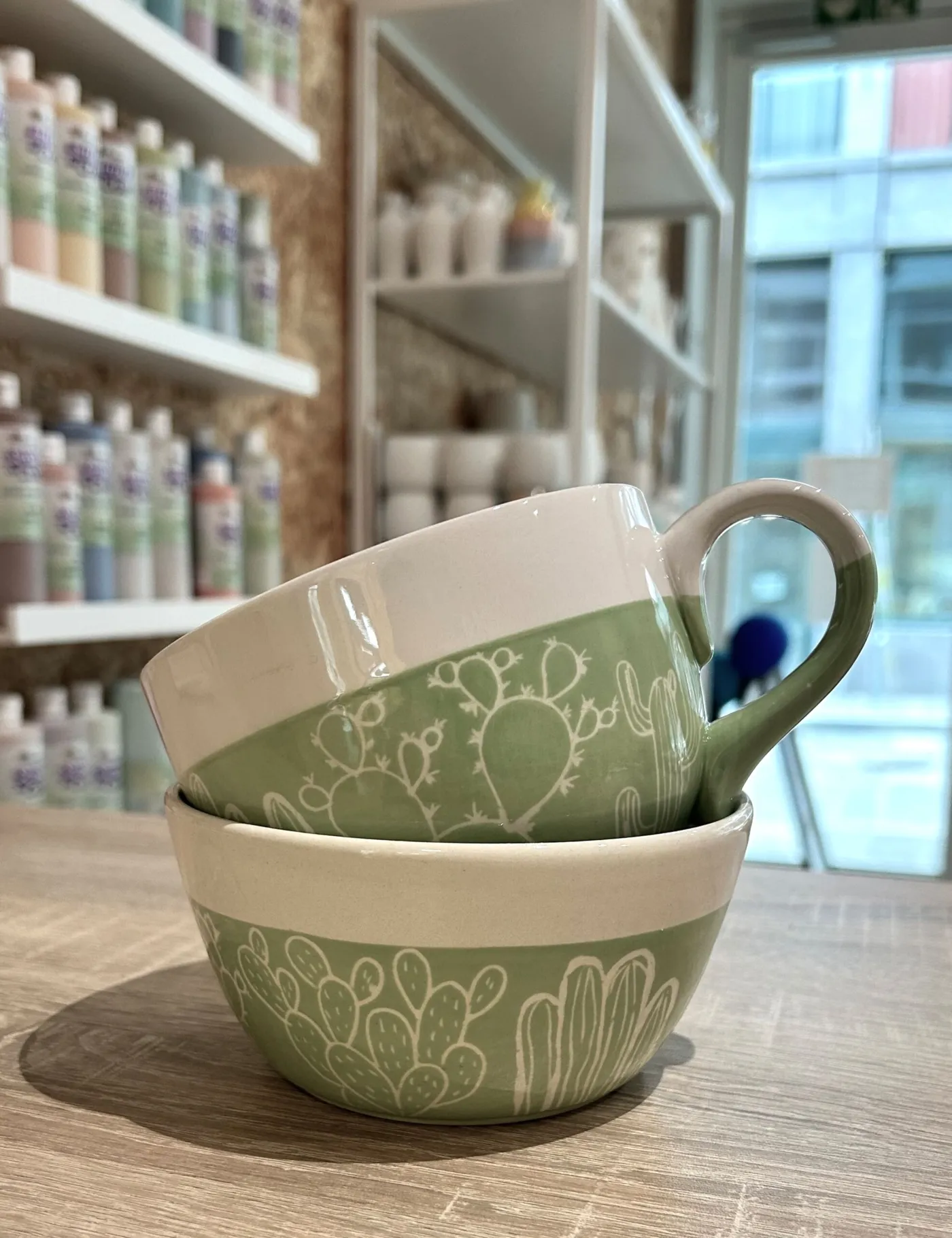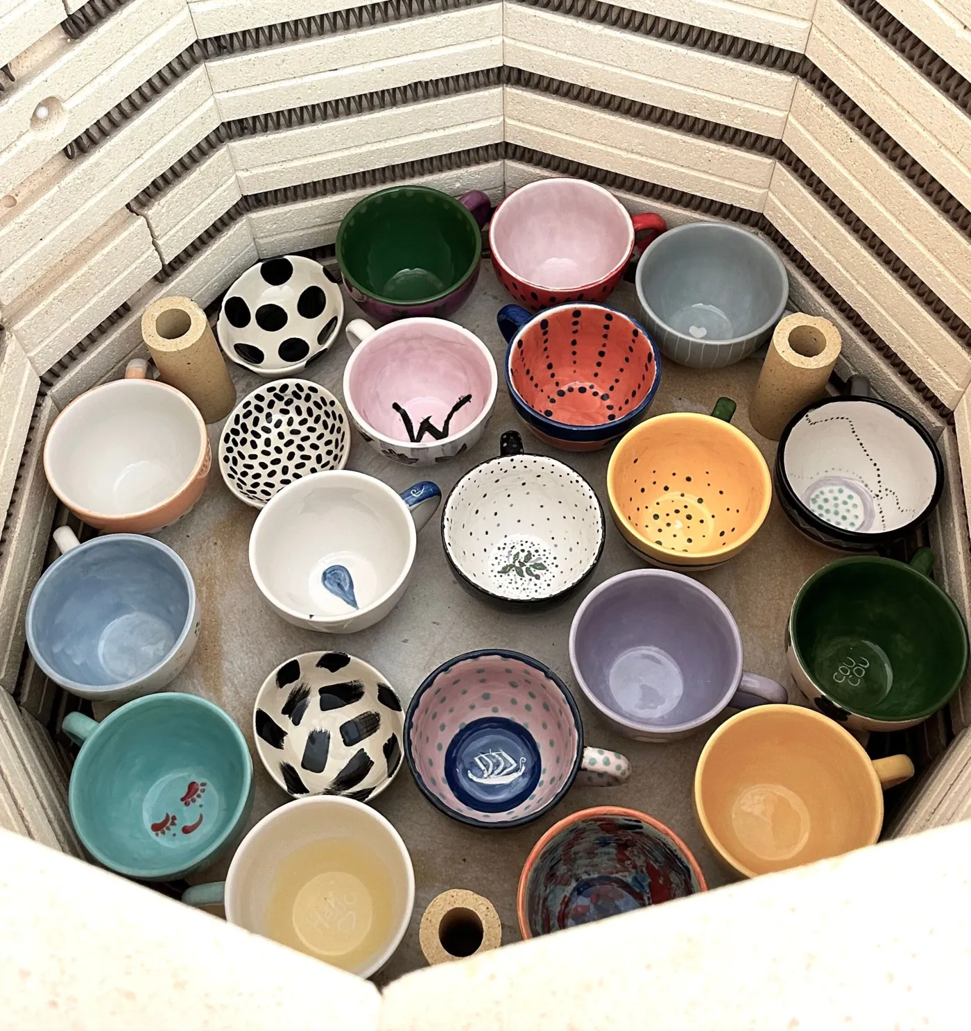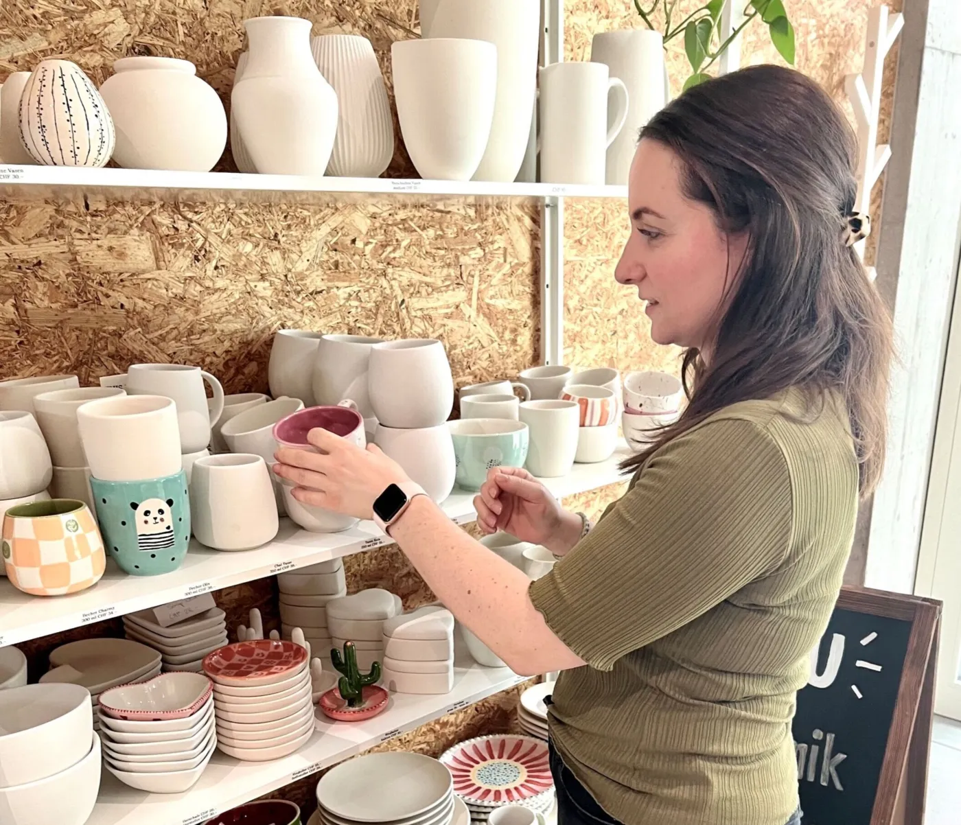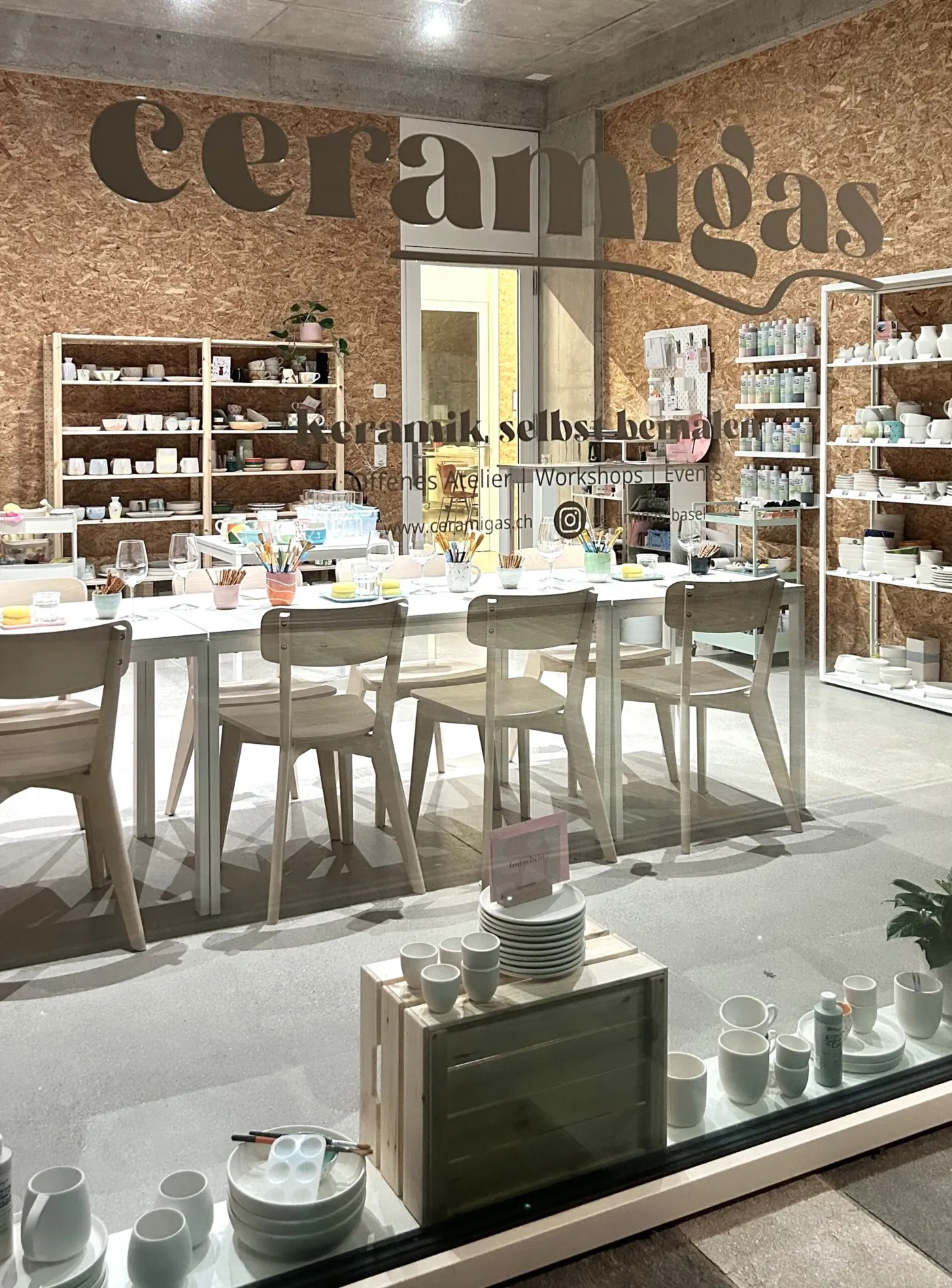 Zurück in der Schweiz liess sie dieses Thema nicht mehr los und sie probierte es selber aus. In einem Atelier in Deutschland, dann in einem in der Schweiz. Bereits im Juni absolvierte sie schliesslich ein Keramikmal-Seminar, lernte verschiedene Maltechniken, übte sich im Glasieren und Brennen. «Ich schrieb dann auch gleich einen Businessplan und bestellte einen Brennofen», grinst sie «ohne zu wissen, wo ich ihn unterbringen würde». Im August unterzeichnete sie spontan einen Mietvertrag im Westfeld und bot im September erste Pottery-Events im Bees and Birds Café an, die immer schnell ausgebucht waren. »Irgendetwas hat mich einfach gezogen, obwohl eine Selbständigkeit eigentlich nie mein Traum war», sinniert sie rückblickend. Im Oktober 2023, ein halbes Jahr nach Olivias Auszeit auf Bali, feierte ceramigas Eröffnung.