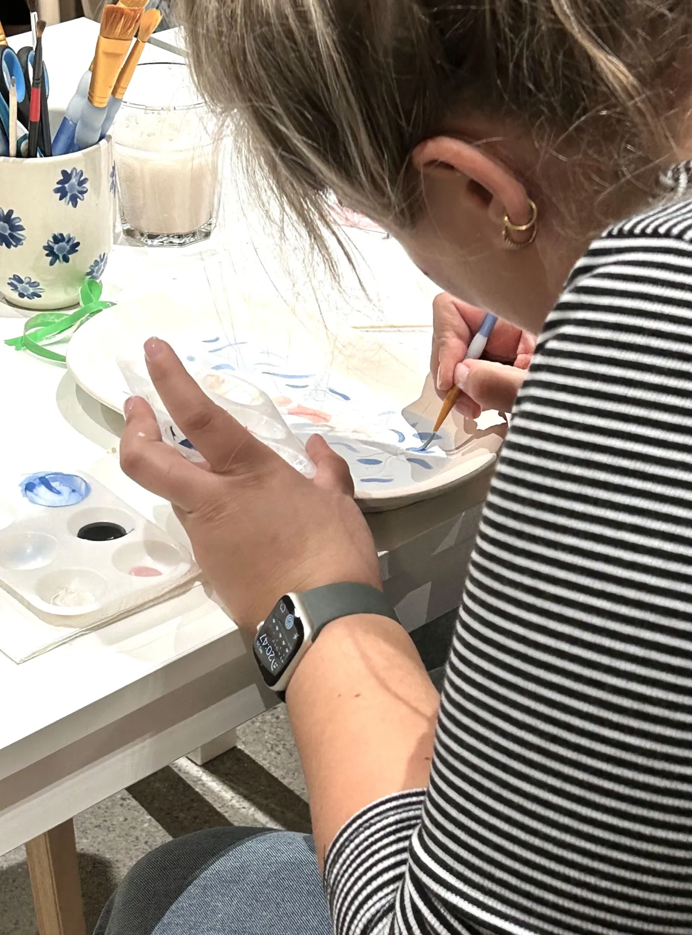 Neben ihrem offenen Atelier bietet sie seither regelmässig Events an, bei denen sie mit anderen Basler Unternehmen zusammenarbeitet. Den «Paint & Waffle Brunch» mit enila zum Beispiel, «Pottery Painting & Wine» mit Donati Vini oder das After-Work-Malen samt Apéro von Umami Basel. Auch Firmen-Events, Geburtstags- oder Bachelorette-Partys hat sie schon ausgerichtet.