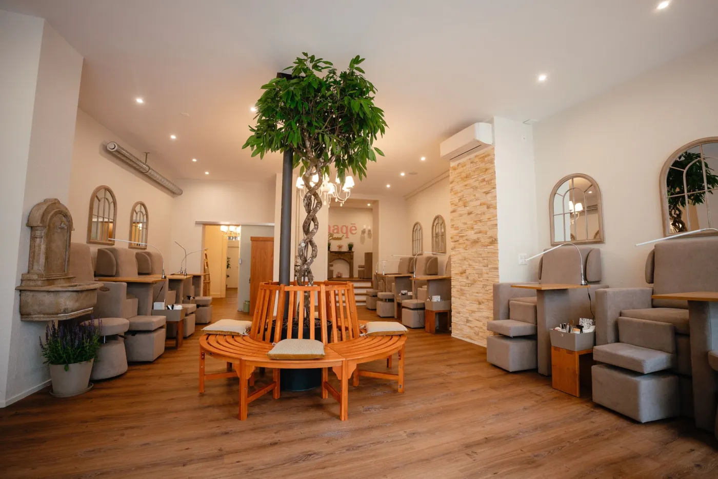 Das Angebot an Beautybehandlungen lässt wie zuvor im Rahmen des Konzepts der Schminkbar keine Wünsche offen. Von Pediküren und Maniküren über Gesichtspflege bis hin zu Massagen in separaten Räumen kannst du es dir hier als Frau von Kopf bis Fuss gut gehen lassen und so Wohlbefinden, Schönheit und Selbstwertgefühl auf ein neues Level bringen. Mit Maqē bietet Daniela ausserdem spezielle Behandlungen an, die über das klassische Angebot hinausgehen: «Dazu gehören Head Spa, Kobido oder Face Gym», schwärmt Daniela und blickt sich glücklich und stolz im neugestalteten, hellen Beautystudio um, welches in der Mitte von einem grossen Baum geschmückt wird.