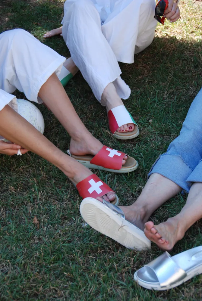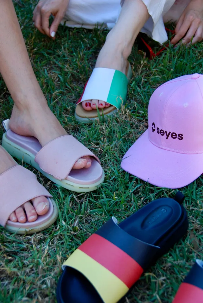 Das Basler Start-up Seyes denkt Schuhe neu. Das Konzept ist simpel: Um nicht ständig neue Schuhe kaufen zu müssen, die im Schuhschrank zuhause und im Feriengepäck erst noch viel Platz brauchen, hat Seyes den ersten modularen und nachhaltigen Mode-Schuh entwickelt. Die hochwertig produzierte Sohle bildet das Basis-Element, die verschiedenen Modelle können beliebig mit der Sohle kombiniert werden. Für die kommende Women's Euro, die im Juli in Basel stattfindet, hat Seyes besondere Fan-Sandalen entworfen, die du zu den Länderspielen tragen kannst. Erhältliche Flaggen: Schweiz, Deutschland, Italien, Frankreich und Spanien. Hopp Schwiz – oder Forza Italia!