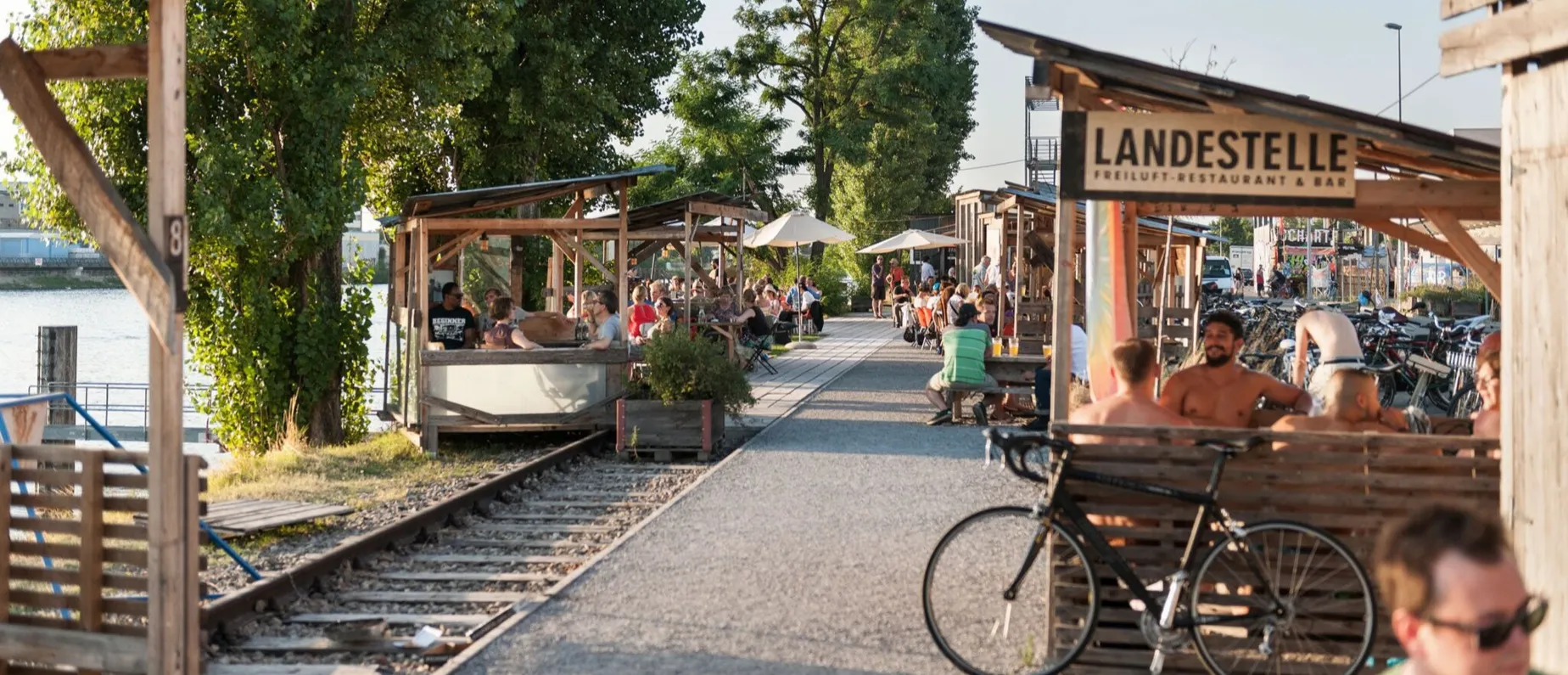 Bei einer leicht verdaulichen Pinsa, einem hausgemachten Eistee oder einem Crodino Sprizz kommen im Piccolo Cibo unweigerlich Feriengefühle auf. Das liegt auch am Blick aufs Wasser, an den schattenspendenden Kastanienbäumen und an der Stadtmauer, die nirgendwo so prominent ist wie hier im St. Alban. Ein Gefühl wie in Italien – Buch mitnehmen und in andere Welten abtauchen!