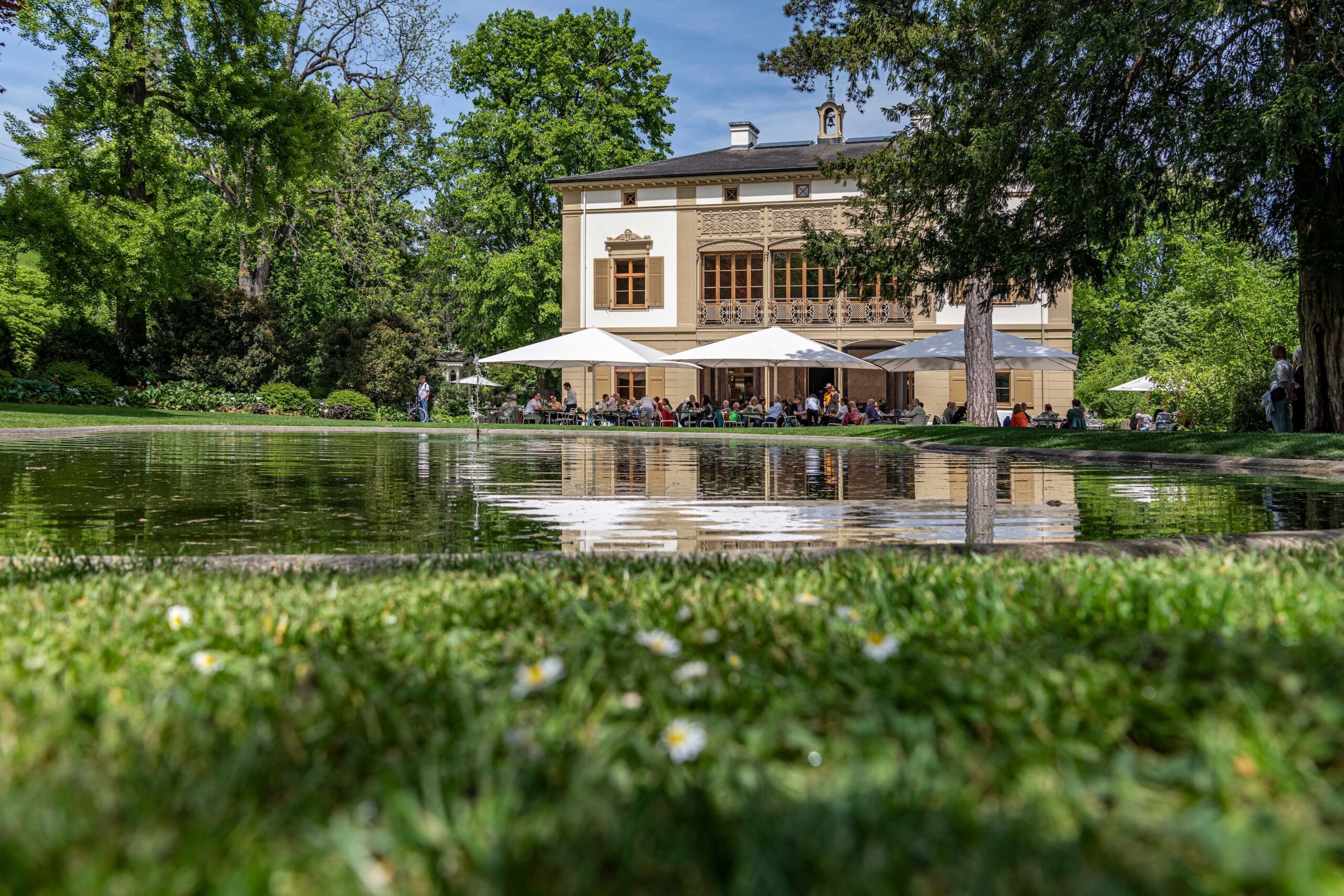 Wer sich zum Brunchen oder Lunchen an diesen verwunschenen Ort vorwagt, darf sich ruhig auch ein wenig aufbrezeln: Mit hübschem Kleidchen, Hut oder Hochsteckfrisur passt du zum Setting, die über 300 Jahre alte Villa Merian hat schliesslich Stil und Klasse. Direkt am Teich sitzend kannst du mit Blick über den üppigen Park ein vegetarisches Tartar geniessen oder eine Sommer-Gazpacho schlürfen. Ehre, wem Ehre gebührt.