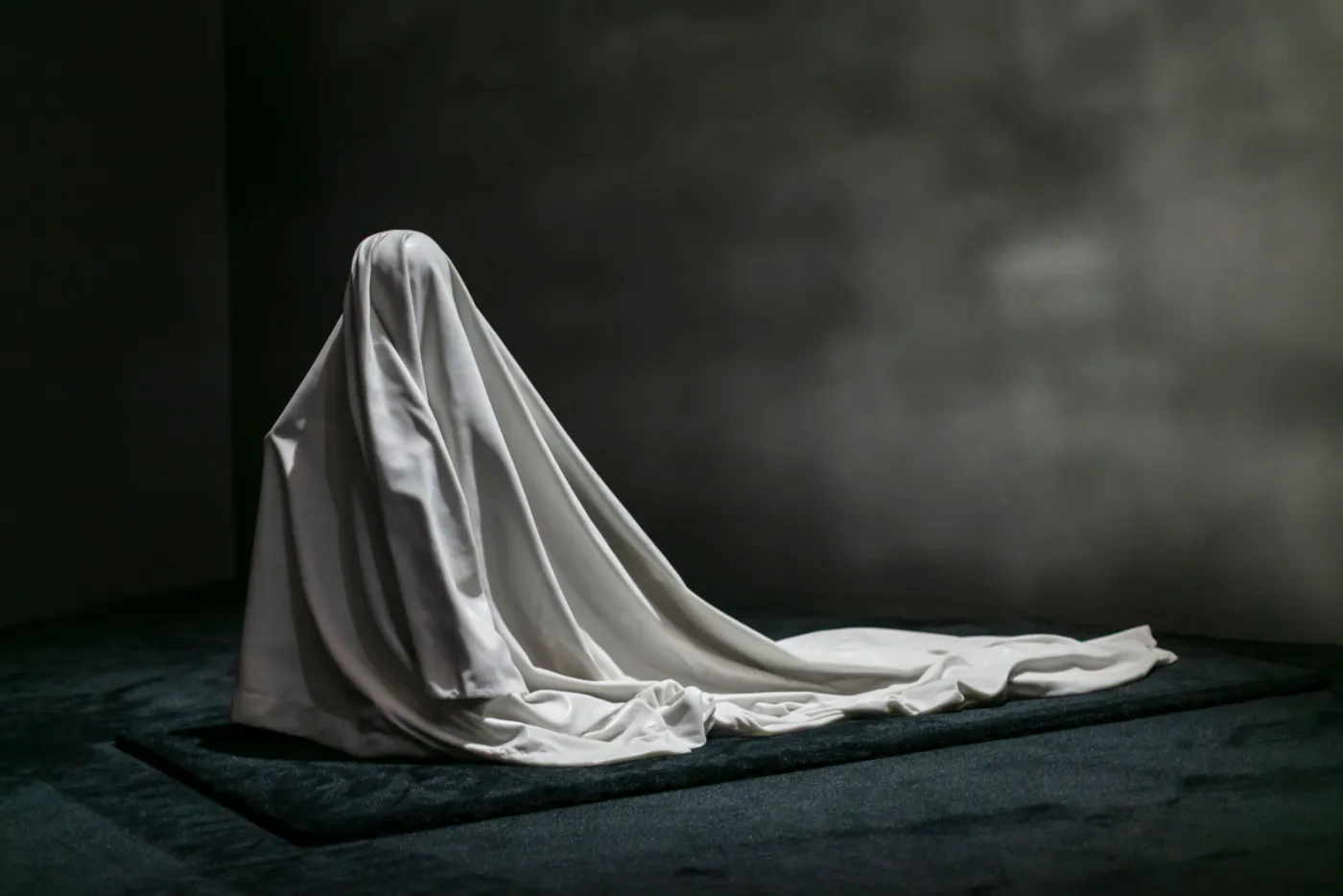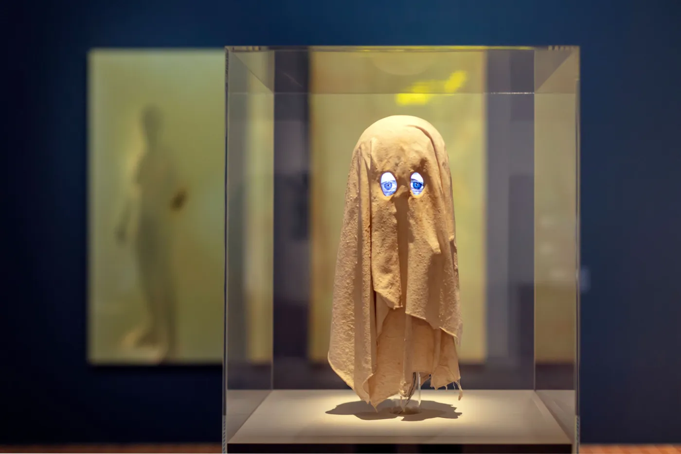 Auf dem Weg durch die Ausstellung begegnen wir den Gemälden alten Meister genauso wie Geisterfotografen und spiritistischen Medien. Da steht ein durch einen Geist ramponierter Stuhl, die raumfüllende Installation eines nachgebildeten Hauses aus dem Hitchcock-Film ‘Psycho’ und ein direkter Draht zum Jenseits. Wir finden einen vermeintlich leeren Raum und Kleider, die von vererbten Traumata erzählen. Und natürlich ist da auch der kleine Star der Ausstellung: Das auf allen Plakaten abgebildete Geistwesen Fantasmino des amerikanischen Fotografen, Video- und Installationskünstlers Tony Oursler.
