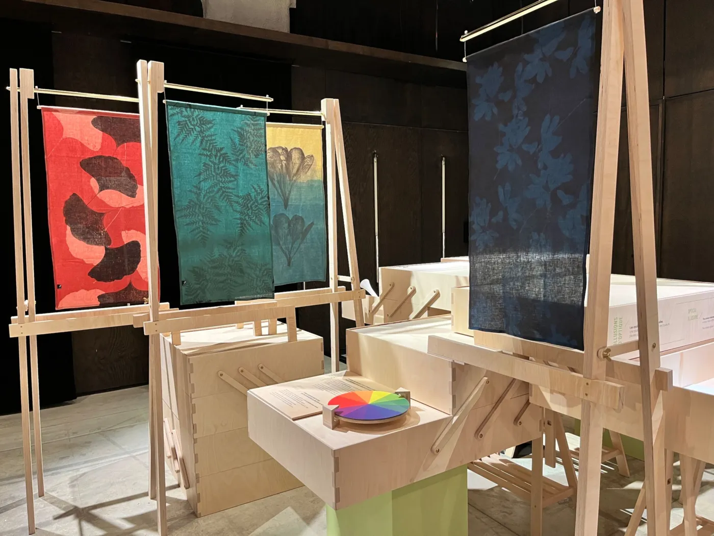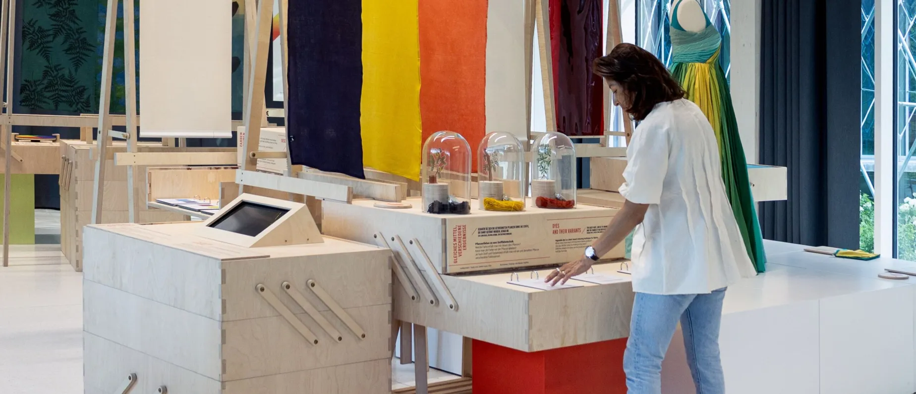 Die Ausstellung lädt dazu ein, selbst aktiv zu werden und physikalische und sensorische Experimente durchzuführen. Speziell für die Ausstellung wurde beispielsweise ein Textilherbarium mit Pflanzenfarben und ein Farbkarten-Kleid geschaffen. Hier hast du die Gelegenheit, sämtliche Sinne zu trainieren und zu testen: Das Sehen, den Tastsinn, das Gehör und den Geruchssinn.