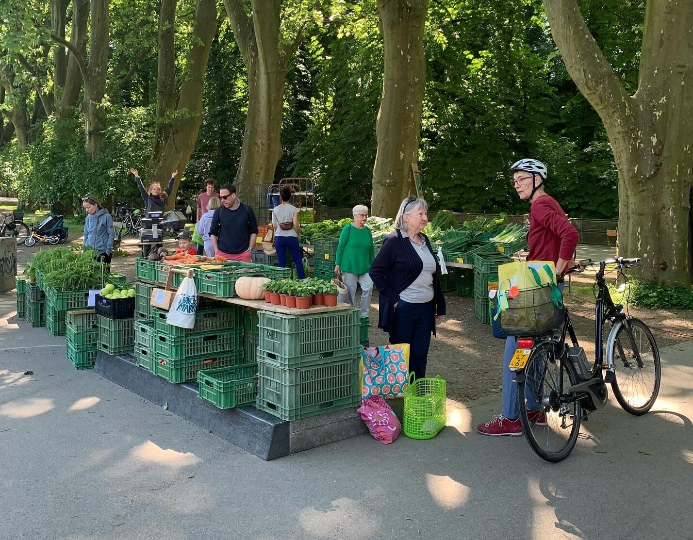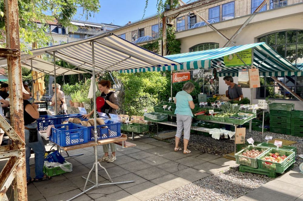 Ein Marktbummel zum Feierabend? Unbedingt! Unter schattigen Bäumen gibt’s frisches Gemüse, feines Brot, Käse, Kaffee und viel Quartier-Charme. Klein, familiär und genau das Richtige für einen entspannten Mittwochausklang.