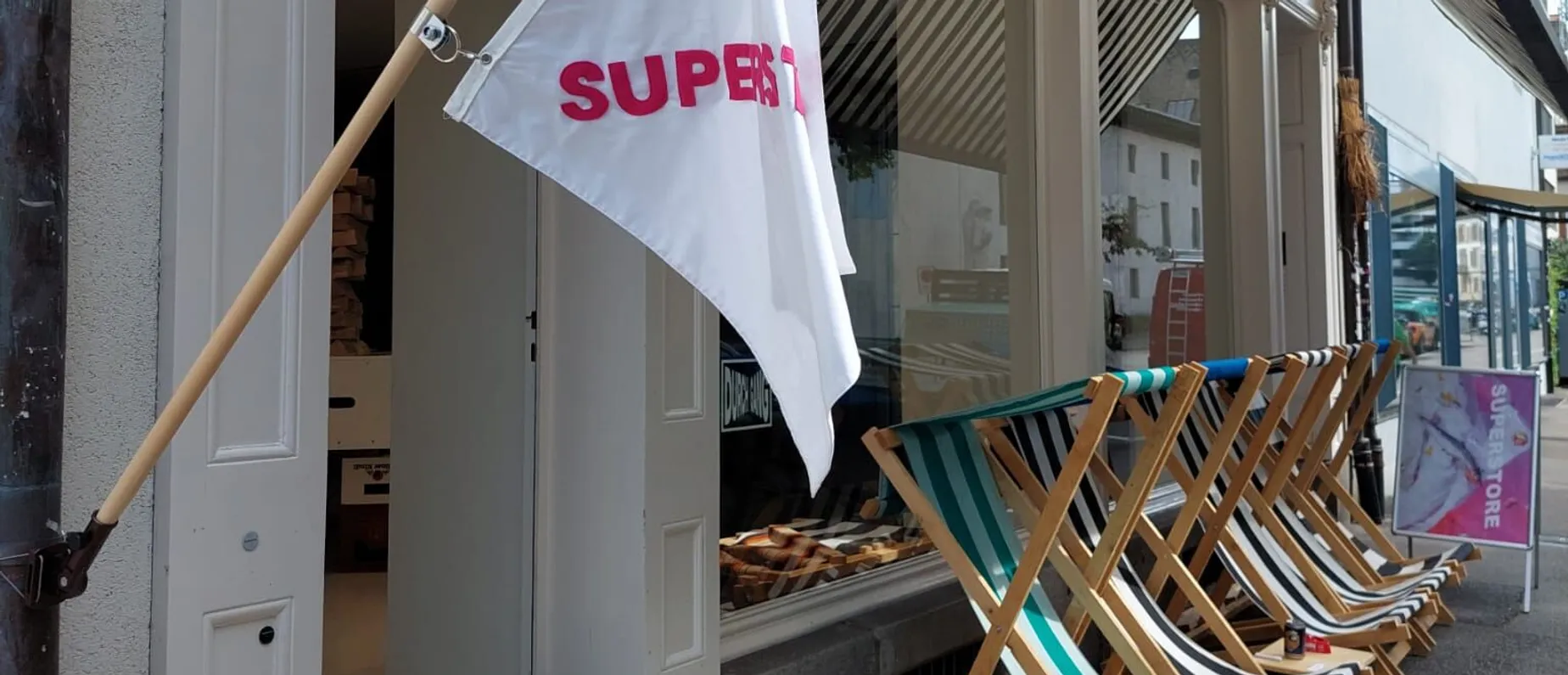 Dabei gibt es im SUPERSTORE natürlich auch mehr zu entdecken als Malerei und Skulpturen. Nebst den klassischen Kunstkategorien findest du hier auch Kleidung, Schmuck und Möbel. Vom Badeanzug mit eingenähten Dehnungsstreifen über die gestrickte Tasche bis zum mass gefertigten Tisch kannst du dir die ganze Wohnungsausstattung erneuern. Und wenn du dir den Kauf erst noch überlegen willst, bieten dir die gemütlichen Liegestühle vor der Galerie die Gelegenheit dazu. Schnapp dir einfach eines der ausliegenden Literaturmagazine und ein Getränk aus dem Kühlschrank und lass dir draussen die Sonne ins Gesicht scheinen.