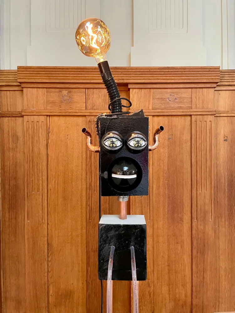 Die Ausstellung der Galerie Gleis4 lebt von der Vielfalt der gezeigten Kunstwerke und von deren sorgfältigen, verspielten und überraschenden Inszenierung und Einbettung in die historischen Räumlichkeiten des Bahnhofs SBB. Hier treffen denkmalgeschützte Gemälde und schmuckvolle Wandverkleidungen auf Baustellencharakter mit offenen Rohren und Leitungen, die aus dem Boden ragen. Da grinst dich aus der einen Ecke eine lebensgrosse, abstrakte Gorilla-Skulptur an, da hängt das von Malfarbe bespritzte Arbeitshemd eines ausstellenden Künstlers von der Decke, da zeigt dir ein Gemälde respektlos den Mittelfinger.