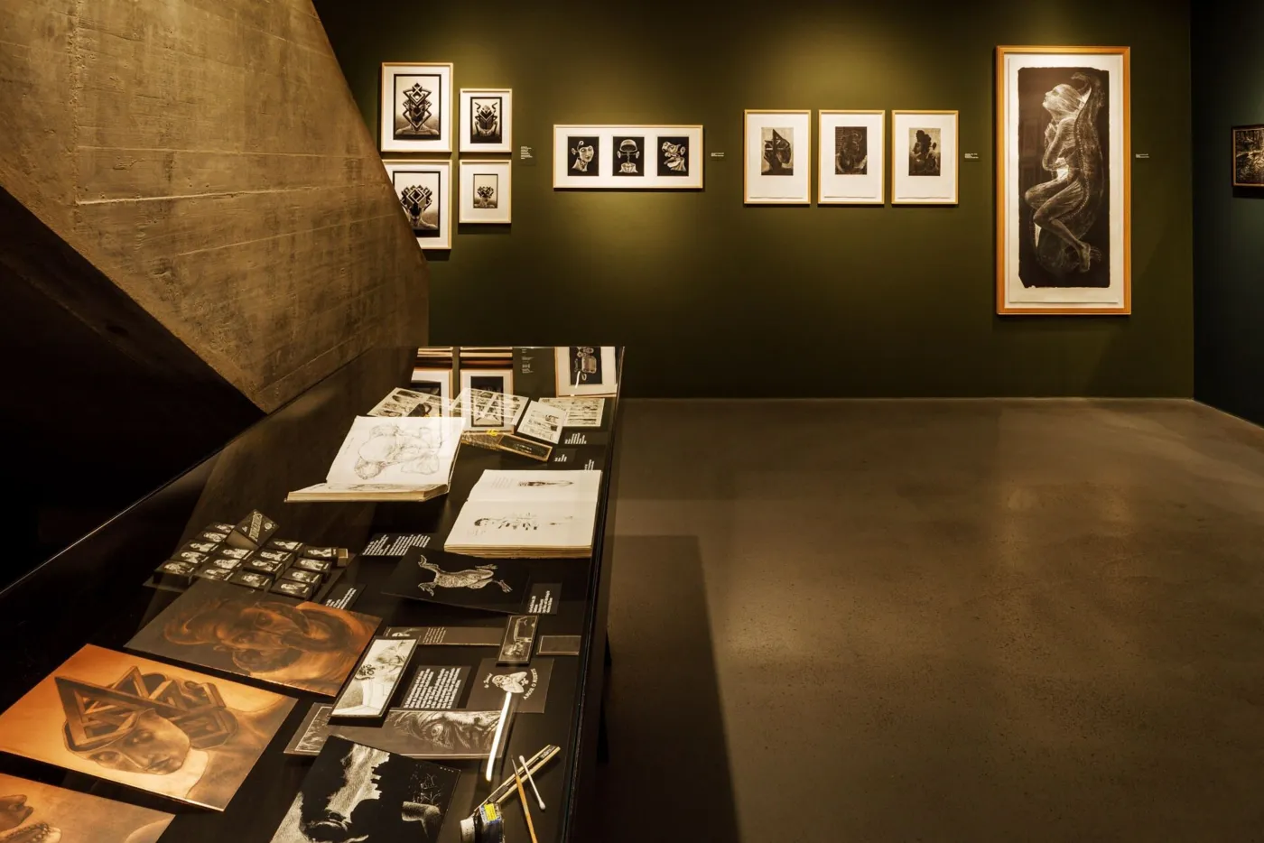 Ott, der sich neben seiner Arbeit als Comiczeichner auch als Musiker in einer Rock’n’Roll-Band sowie als Filmemacher einen Namen machte, geht es bei seinen düsteren Darstellungen der Welt weniger um Provokation als um die Faszination für diese ganz besondere Zeichentechnik und deren Strahlkraft. Der düstere Charakter der Schabkartonzeichnungen lässt einen als Besucherin oder Besucher der Ausstellung unweigerlich selbst tief in seine eigene Seele blicken und sich mit seinen eigenen Urängsten, Schattenseiten und düsteren Fantasien auseinandersetzen.