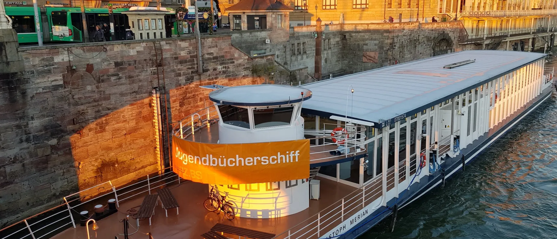 Es ist Teil der Schulzeit wie der alljährliche Sporttag oder das Klassenlager: Das Basler Jugendbücherschiff! Wer erinnert sich nicht gerne zurück an die vergnüglichen Stunden an Bord dieser schwimmenden Bücher-Insel. Ausgerüstet mit Stift und Block hat man all jene Buchtitel auf seiner Wunschliste notiert, in denen man zuvor eingekuschelt im Sitzsack oder liegend auf dem Boden gemeinsam mit seinen besten Freunden gestöbert hat.