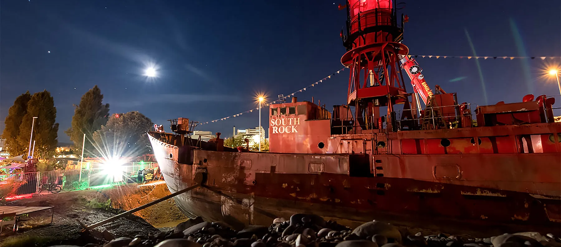 Feuerschiffe haben ein wildes Leben. 55 bewegte Jahre warnte die «Gannet» (zu dt. Tölpel) andere Schiffe vor schroffen Klippen. Doch bei übler Sicht und hohem Seegang halfen weder ihr 12 Meter hoher Leuchtturm noch die rote Warnfarbe. Oft brauchte es die vollen 42 Meter Körpereinsatz, damit Schiffe in Not nicht vor Irlands Küste zerschellten. Schaurige Narben und eine tiefe Kerbe im Schiffbauch zeugen von heftigen Kämpfen. Gut, hat das Feuerschiff eine dicke Haut, fast zwei Zentimeter besten Stahl. Macht 550 Tonnen Lebendgewicht.