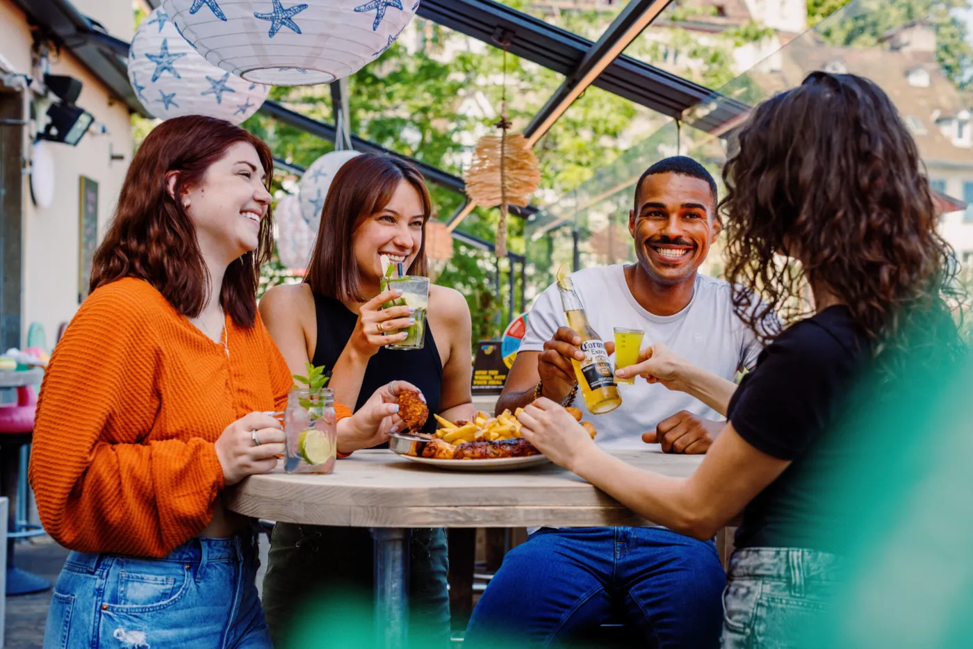 Pascal Holdener: Unsere Terrasse erstrahlt in neuem Look! Wir haben eine Lounge und Stehtische, die sich perfekt eignen, mit Freunden einen chilligen Sommerabend mit tasty Cocktails und yummy Snacks zu geniessen. Grossen Spass macht auch unsere «Spin the wheel»-Karte: Der Zufall bestimmt die Wahl der Drinks oder Snacks. Besonders viel Fun, wenn die Besties oder Tischnachbarn das Schicksalsrad drehen. So sind schon viele neue Bekanntschaften entstanden, ganz im Sinne von Papa Joe: «Have fun & make new friends!»