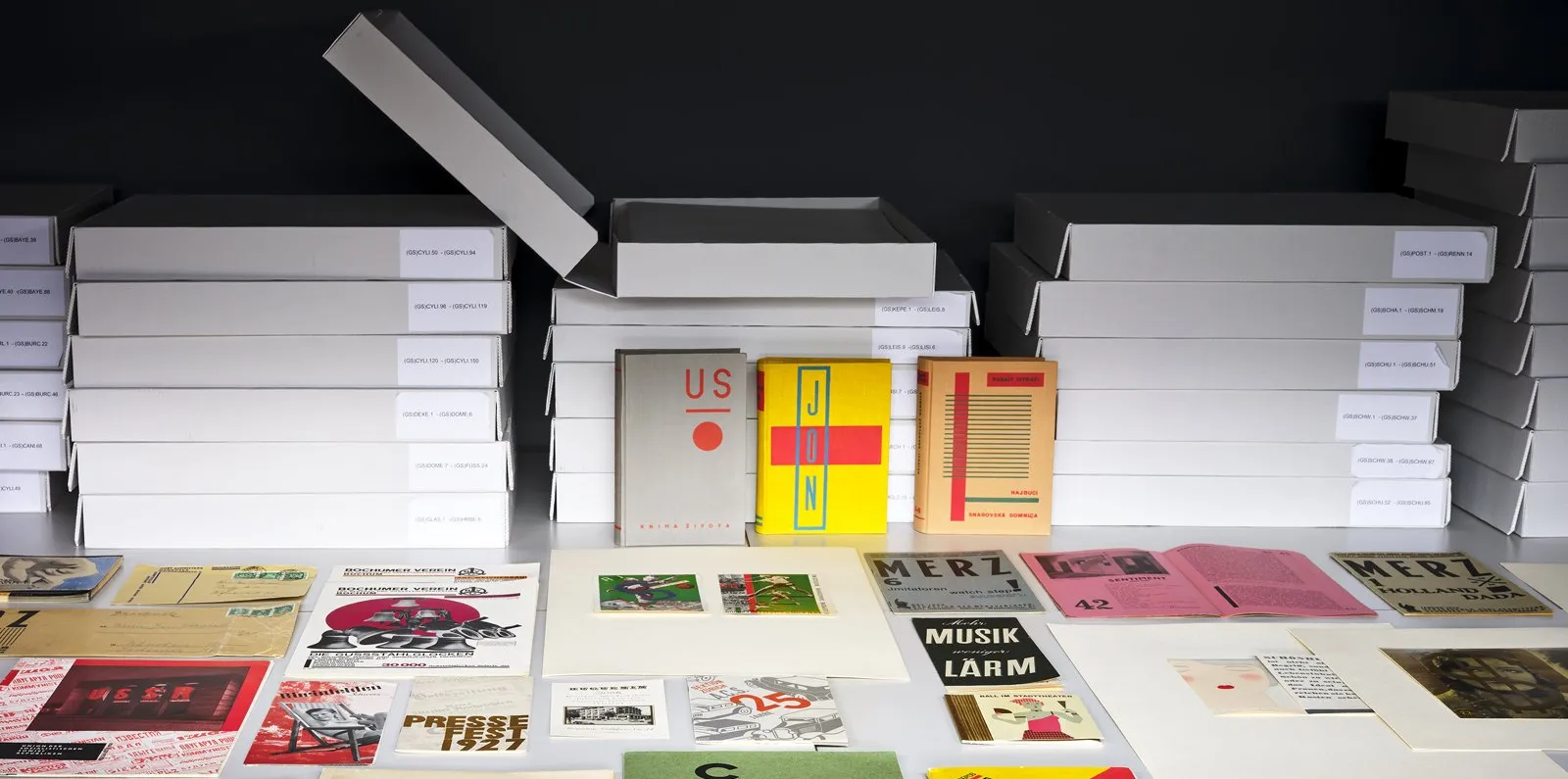 Warum wir dir das alles erzählen? Weil Jan Tschichold, nachdem er 1933 aus Deutschland geflohen war, in Basel lebte, hier an der Gewerbeschule unterrichtete und seine Sammlung mit über 1500 Dokumenten aus dem Bereich der Gebrauchsgrafik an das Gewerbemuseum Basel verkaufte. Und eben diese Sammlung kannst du dir nun erstmals anschauen und somit Weltklasse-Grafikdesign aus den bis heute stilprägenden 1920er und 1930er Jahren entdecken. Da sind kleinformatige Drucksachen von berühmten Gestaltern aus dem Bauhaus-Umfeld zu sehen oder von Künstlern wie Kurt Schwitters oder El Lissitzky – allesamt Pioniere des modernen Grafikdesigns. Mit deren Broschüren, Plakaten, Briefköpfen oder Visitenkarten arbeitete Jan Tschichold in seinem Unterricht.