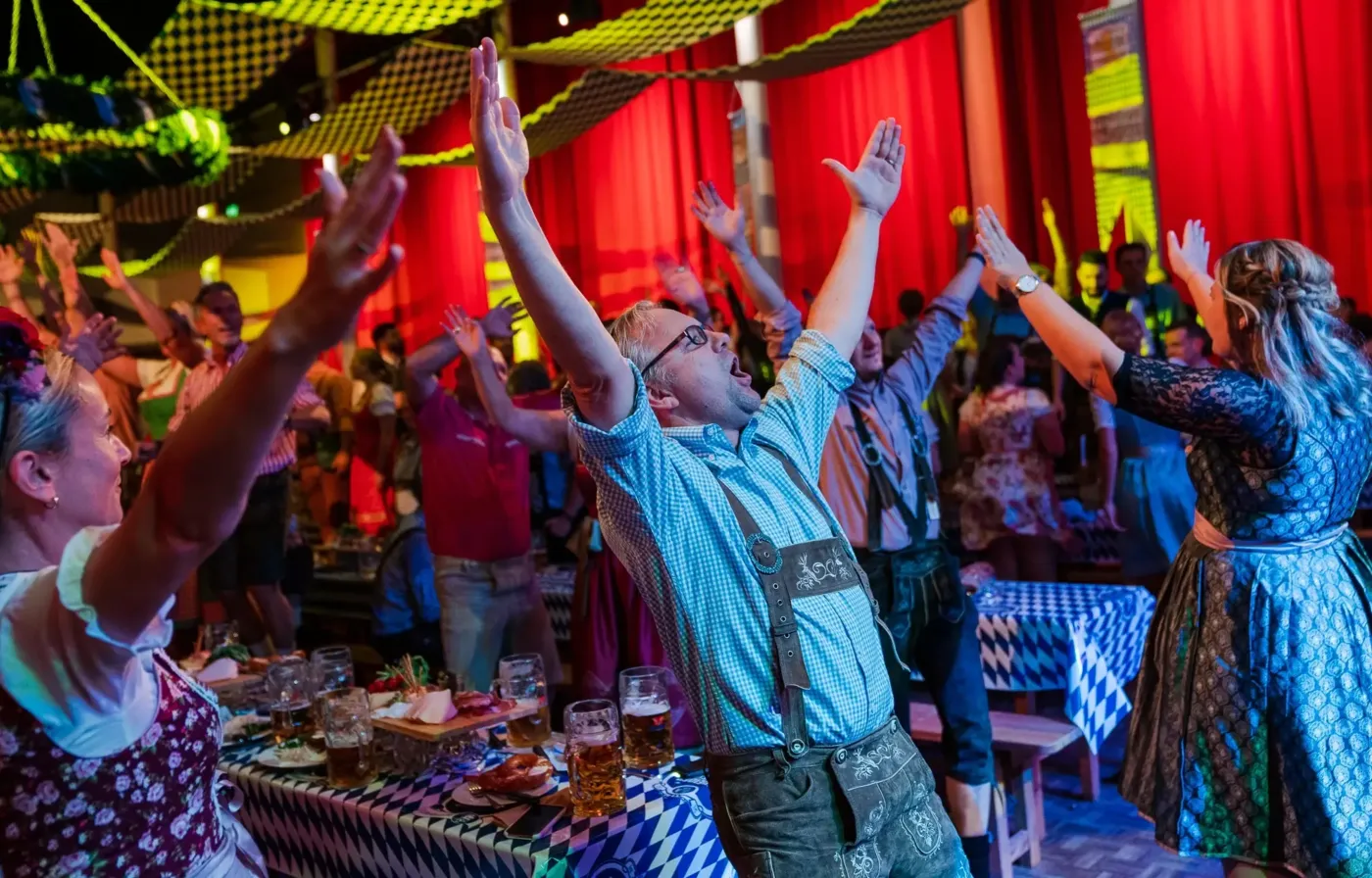 Jo mei, des wird a Gaudi – hol Lederhose und Dirndl raus und reservier am besten gleich einen Tisch, um in fröhlicher Runde einen denkwürdigen Abend zu geniessen. Alternativ gibt es übrigens auch Stehplätze, von denen aus man sich unkompliziert und günstig eine Leberkässemmel und ein Bierchen am Tresen holen kann.