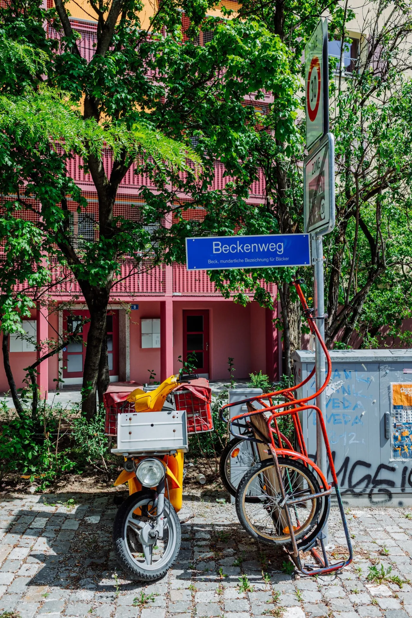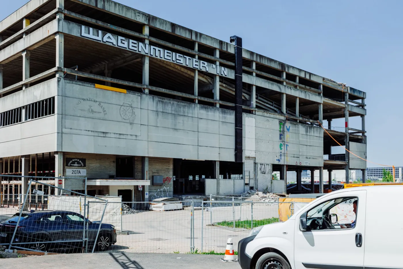 Noch läuft nicht ganz alles nach Plan, zumindest draussen. Zwar ist die direkte Nachbarschaft des Cafés fertiggebaut, doch der grösste Teil der Entwicklung lässt noch auf sich warten – der neue Park existiert erst in der Planung, stattdessen stehen dort die Reste des alten Parkhauses. Solche Kontraste definieren die Umgebung zurzeit: Während die bunten Genossenschaftshäuser am Beckenweg bezogen sind und Hunderte parkierte Velos von zahlreichen Bewohnenden zeugen, ist Richtung Norden vieles der künftigen Entwicklung erst auf Karten auszumachen.