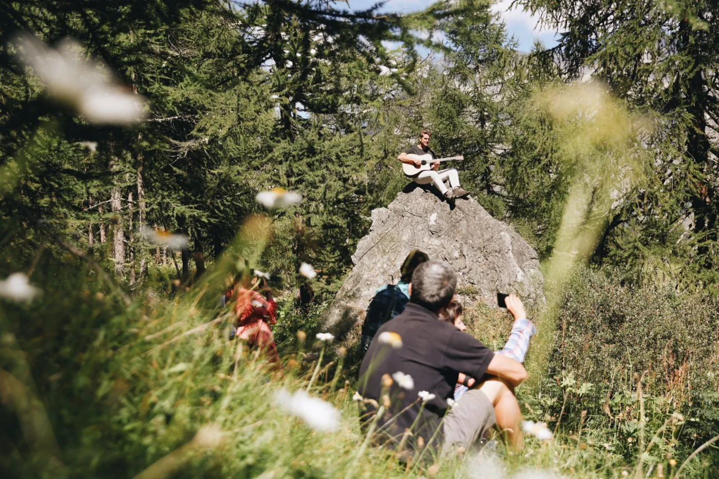 Nicht so beim Wanderkonzert mit Flavian Graber. Den kennst du vermutlich noch von seiner Zeit mit «We Invented Paris», mit der er europaweit über 500 Konzerte gespielt hat. Heute ist Flavian vornehmlich in der Region unterwegs. Hier hat er während Corona die Wanderkonzerte entwickelt, zu denen er eine Hand voll Menschen mitnimmt an seine Lieblingsorte in der Region. Ebenfalls mit dabei: Seine Gitarre und ein paar Lieder, die er auf kleinen Wanderpausen zum Besten gibt.