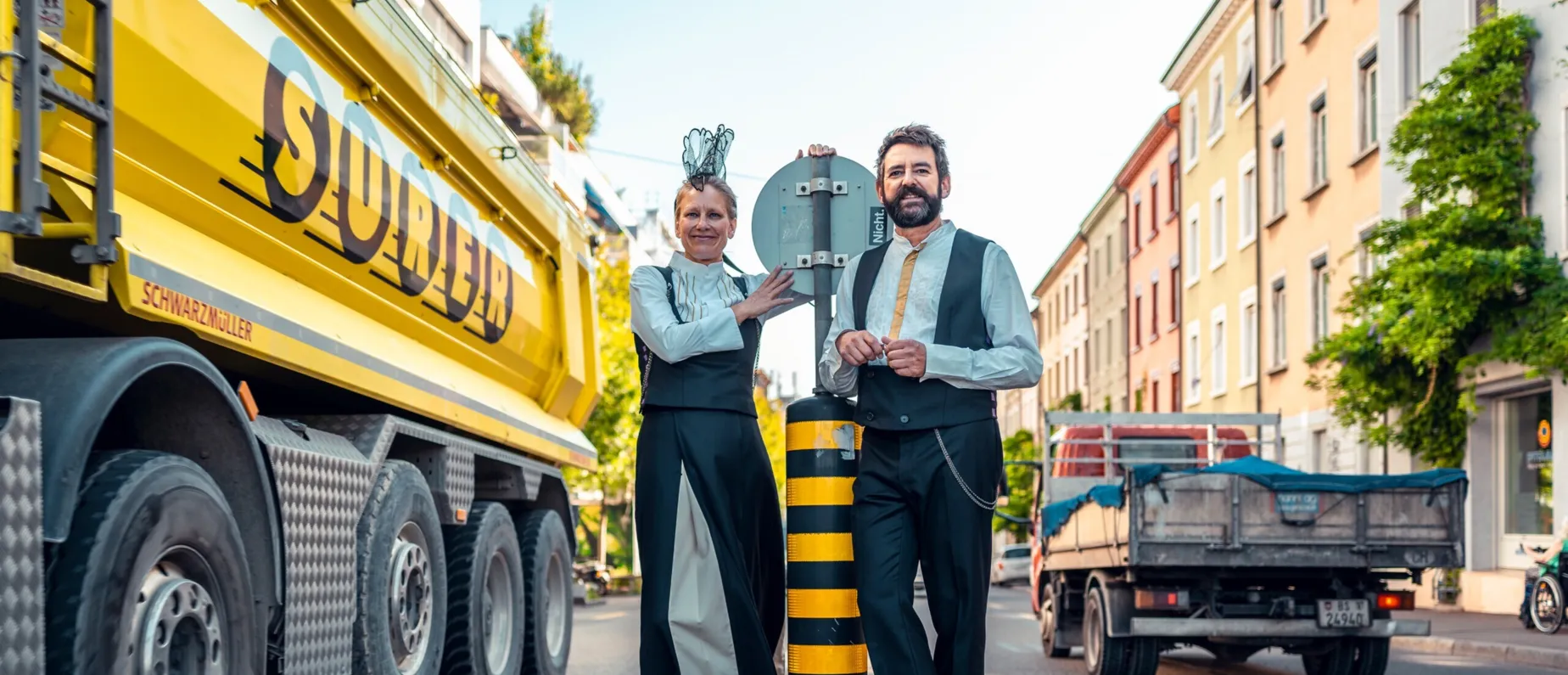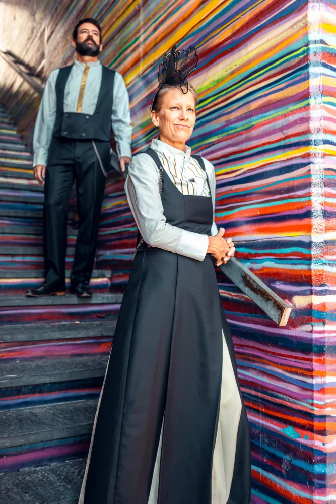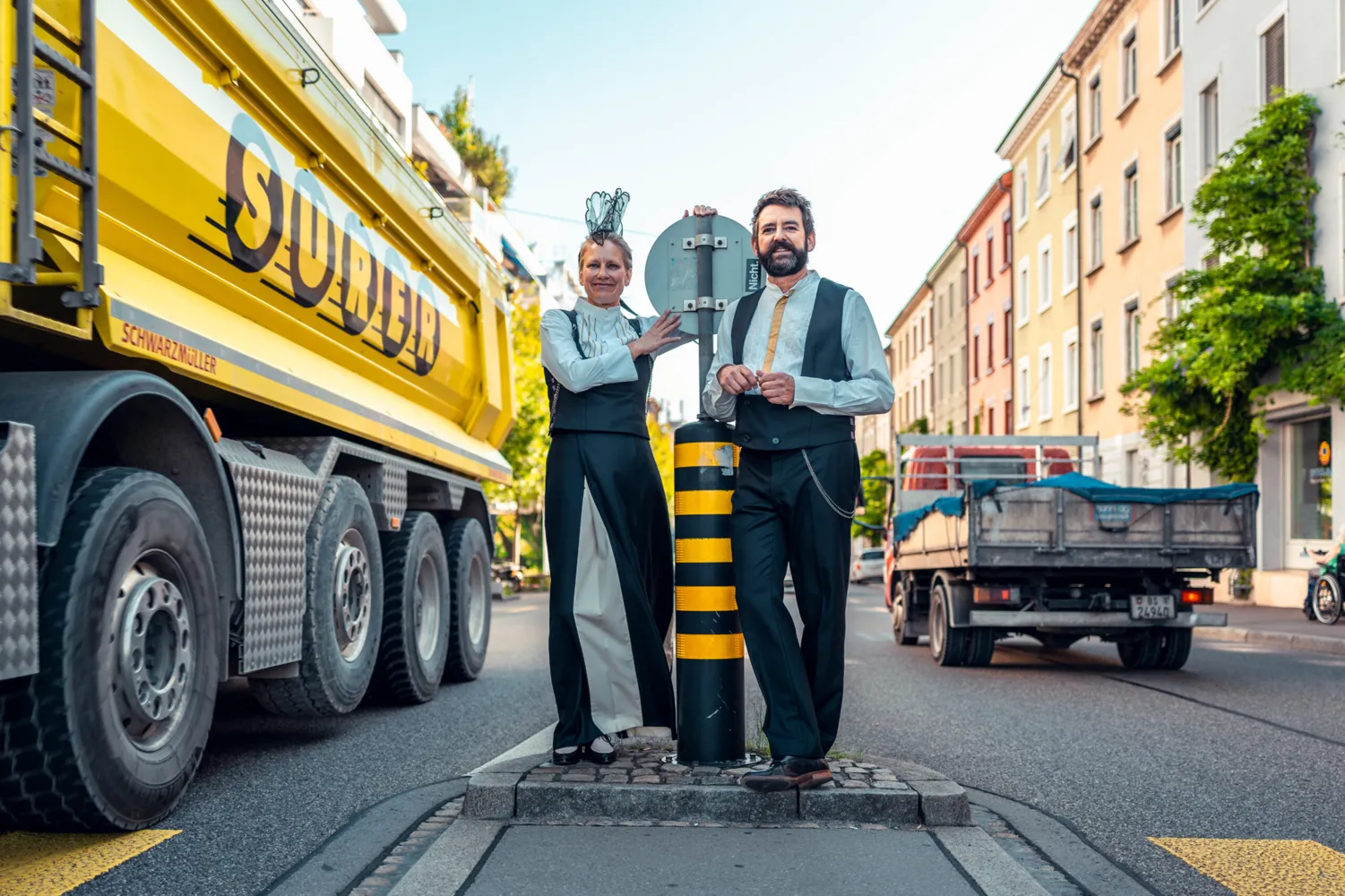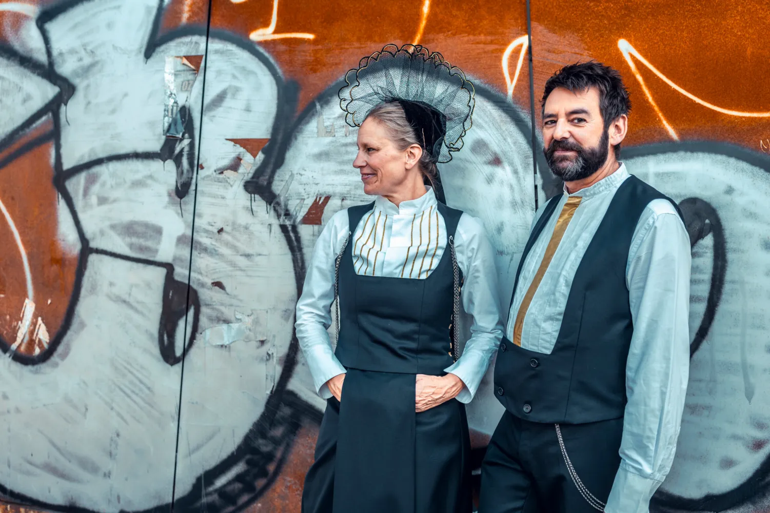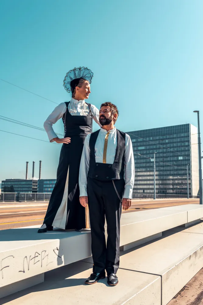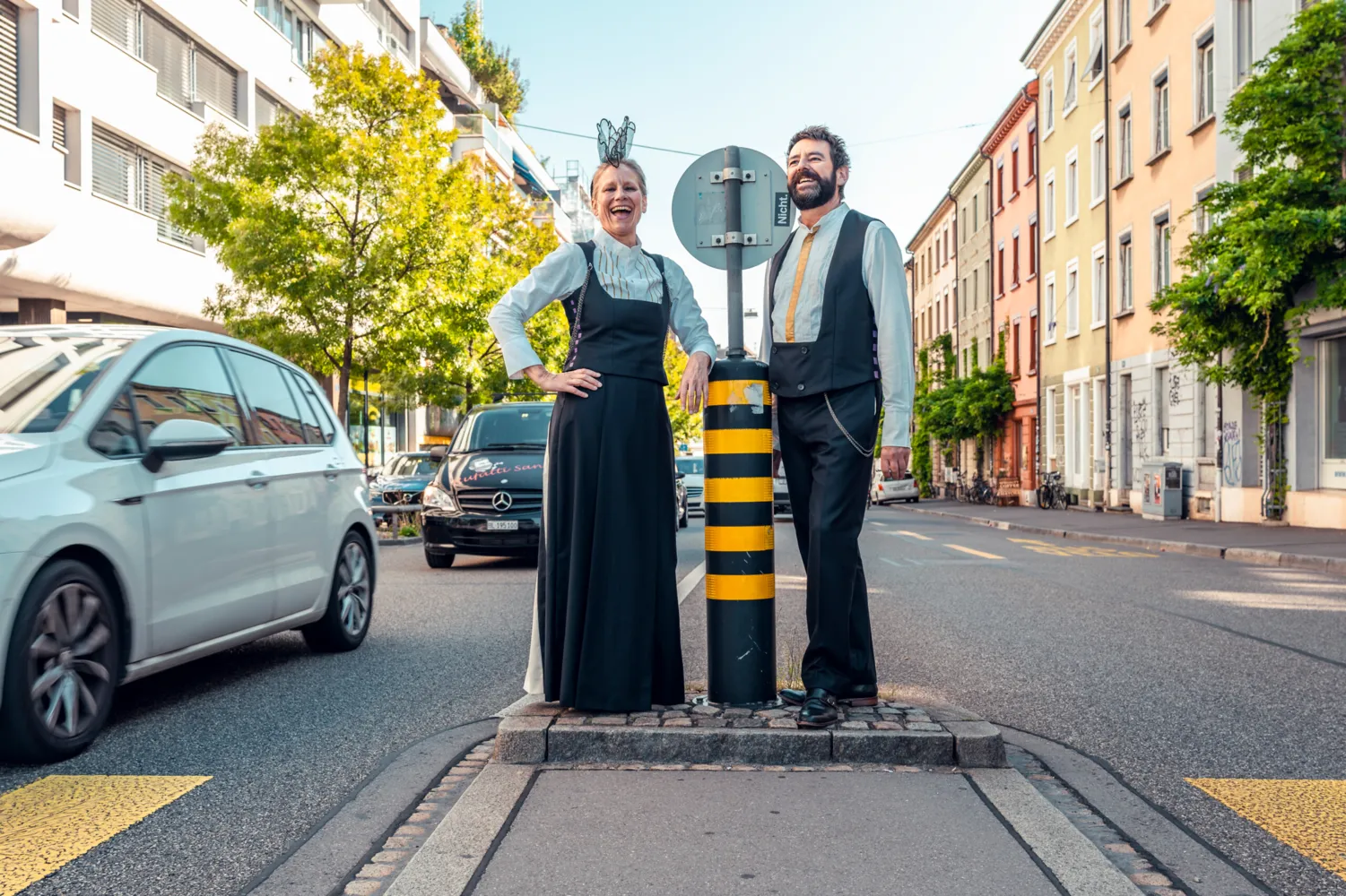 Heute sind sie «s Echo vo dr Feldbergstrooss». Die Outfit-Frage ist mehrheitlich geklärt. Sie haben sich eine eigene Tracht nähen lassen. Keine traditionelle, denn «wir sind ja beide von irgendwo in der Schweiz ins Kleinbasel gespült worden, wir passen – auch mit unseren Dialekten – in keine herkömmliche Tracht», erklärt Thomas. Ihre Tracht, die laut Dina «zu etwa 4/5 fertiggestellt ist», gibt ihnen Heimat und Identität. Der Traum eines den Jahreszeiten angepassten Outfits ist jedoch gross. Derzeit schwitzt das Duo im Sommer und friert im Winter. «Aber singen tun wir trotzdem!», lacht Dina. «Und wir lassen uns nichts anmerken» ergänzt Thomas.