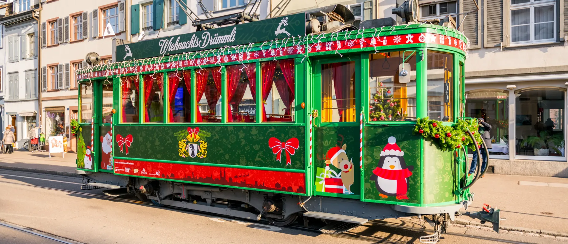 Weisse Weihnachten können wir nicht garantieren – aber ein unvergessliches Erlebnis: Auch in der Vorweihnachtszeit 2024 dreht das Wiehnachts-Drämmli wieder seine Runden in der Basler Innenstadt.