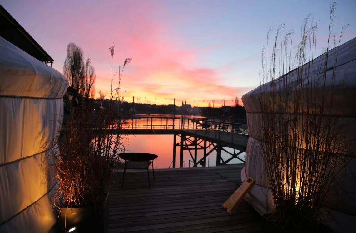 Mitten in der Stadt auf dem Rhein kannst du bei 70 und 90 °C saunieren und zur Abkühlung kurz in den Rhein hüpfen. Es gibt regelmässige Aufgüsse mit natürlichen Essenzen, eine Jurte zum Ausruhen, eine Feuerschale, Getränke im Bistro und einen imposanten Blick auf die Roche-Türme.