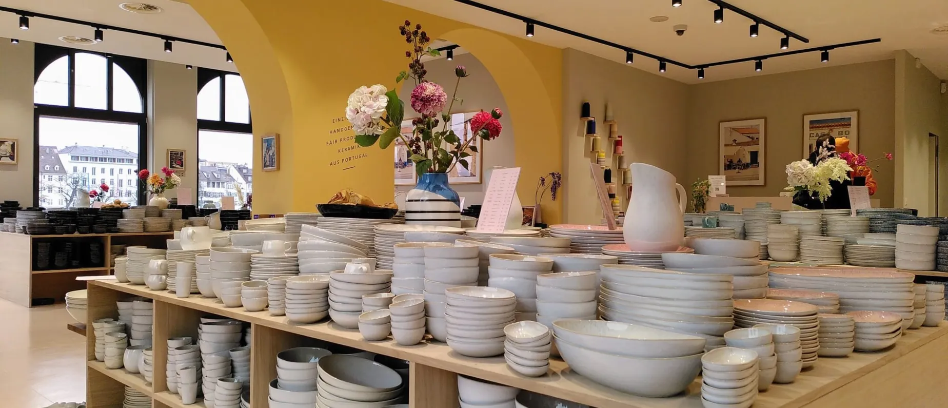 Wieso ich vorher noch nie bei Motel a Miio war: Weil ich es irgendwie geahnt habe – wer hier reingeht, kommt kaum mit vollem Portemonnaie wieder raus. Und diese Gefahr dürfte in der neu eröffneten Filiale an der Eisengasse 1 noch grösser sein; dieser lichtdurchflutete Shop mit Sicht auf Rhein ist echt eine Augenweide. Da spielt die handgemachte Keramik aus Portugal fast die Nebenrolle. Aber nur fast.